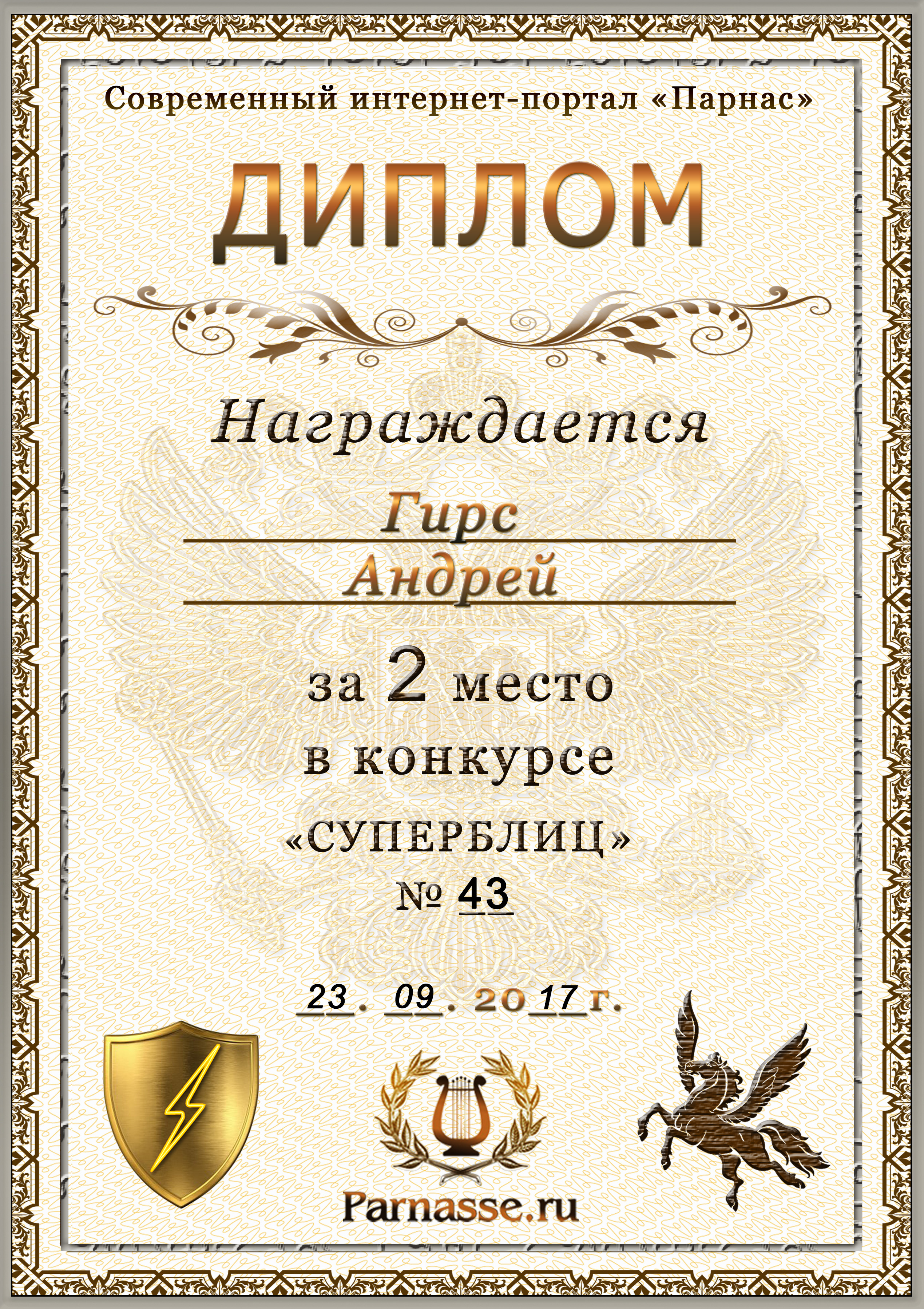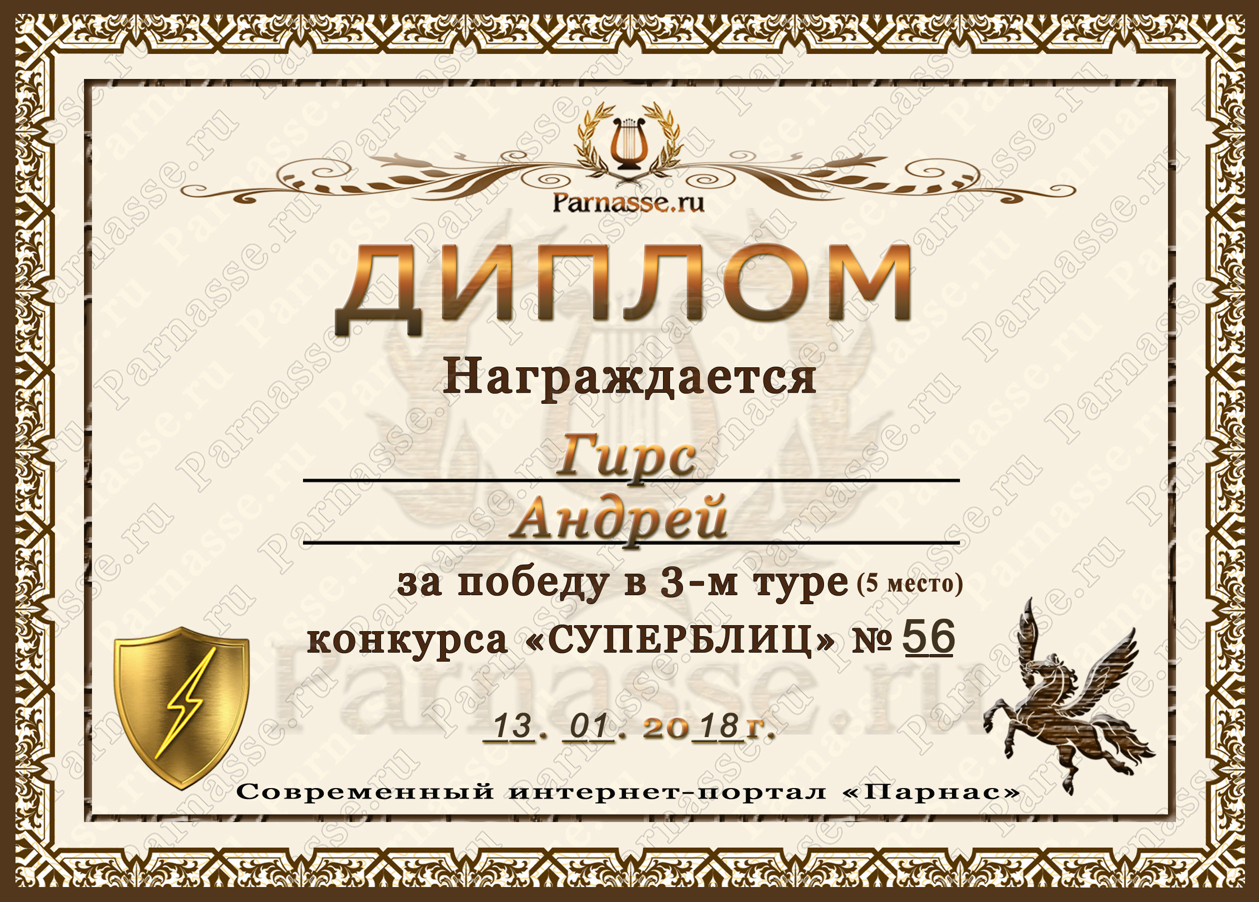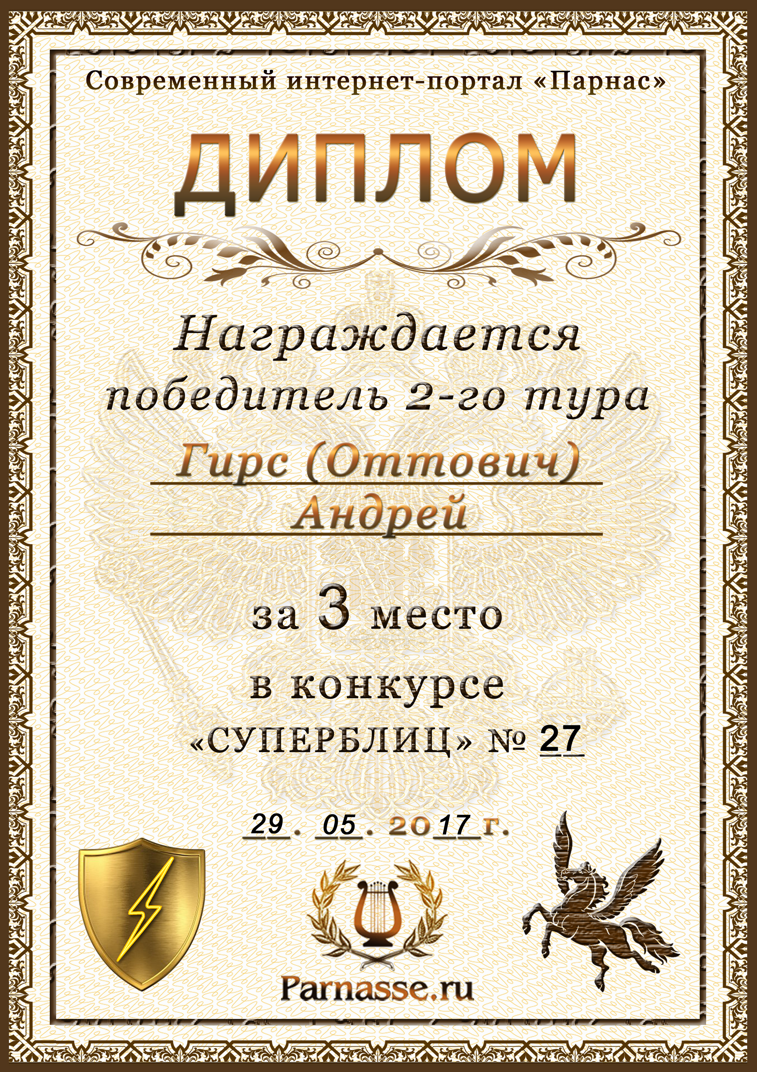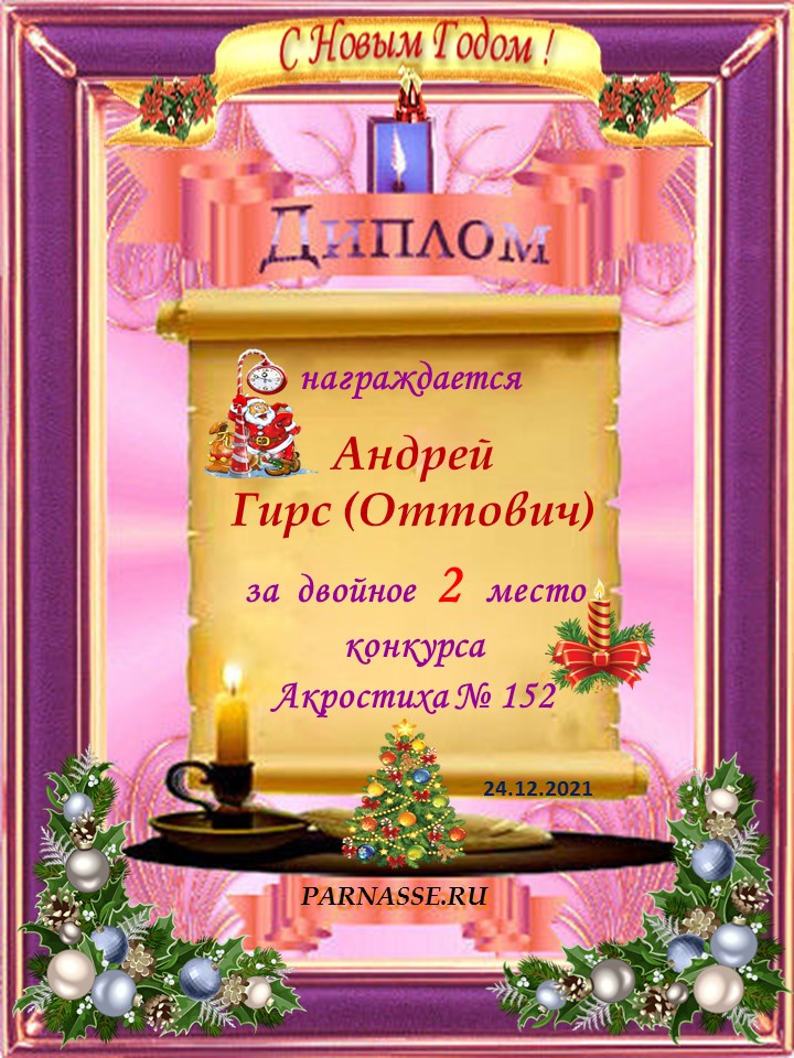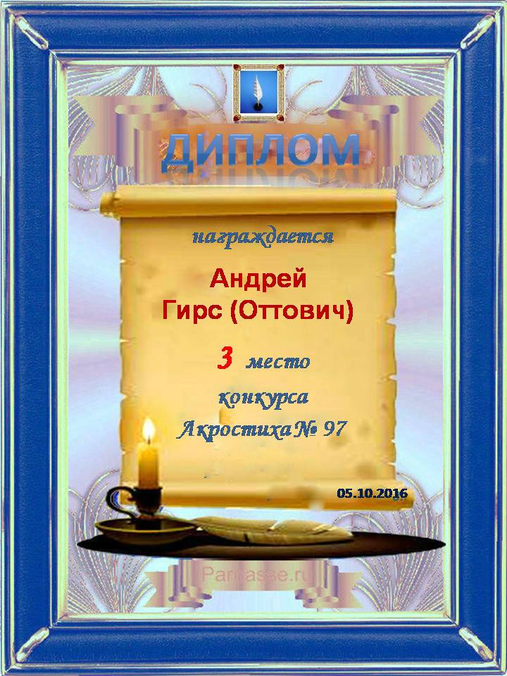 Диплом за 3 место в 97 конкурсе АКРОСТИХА!