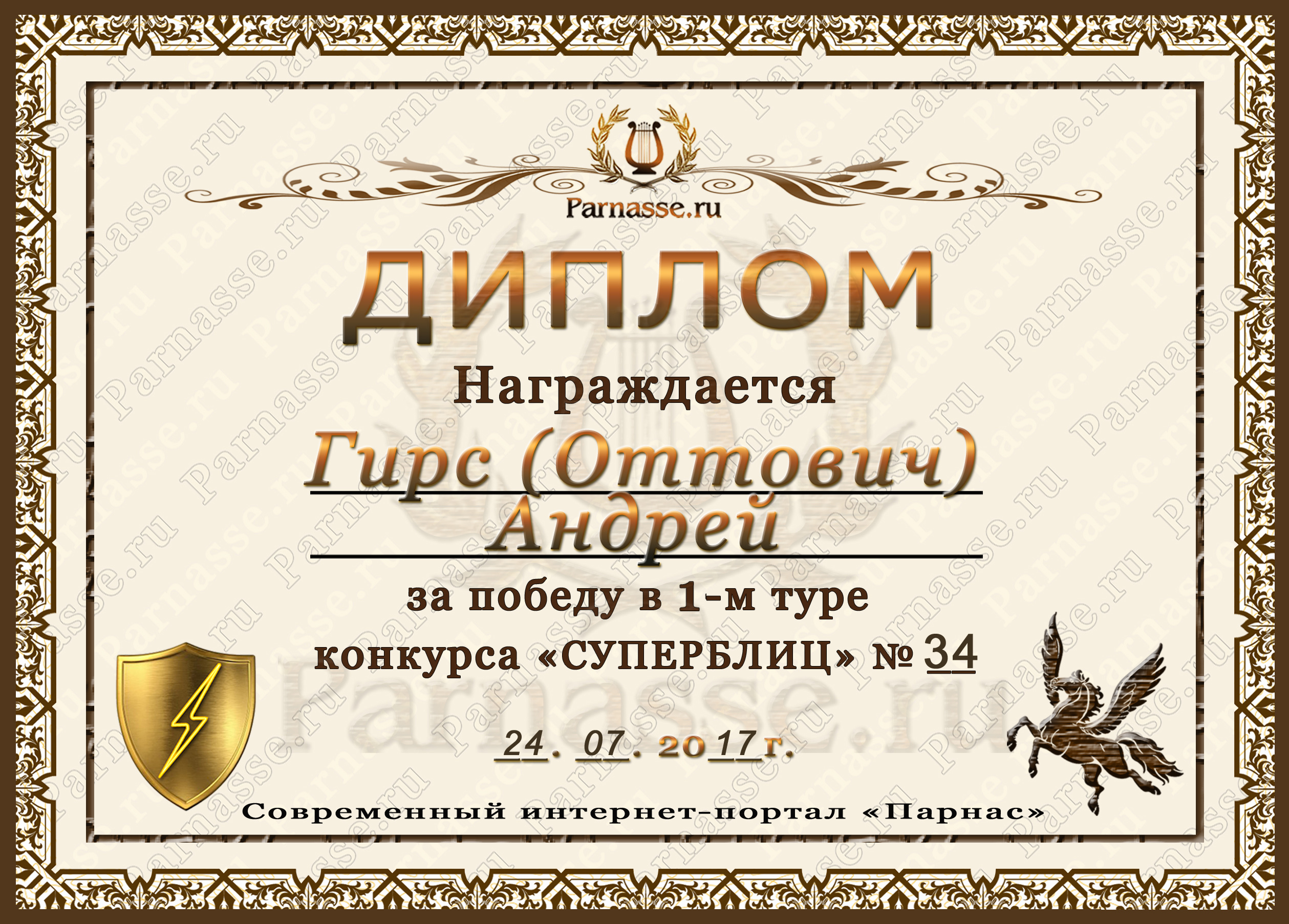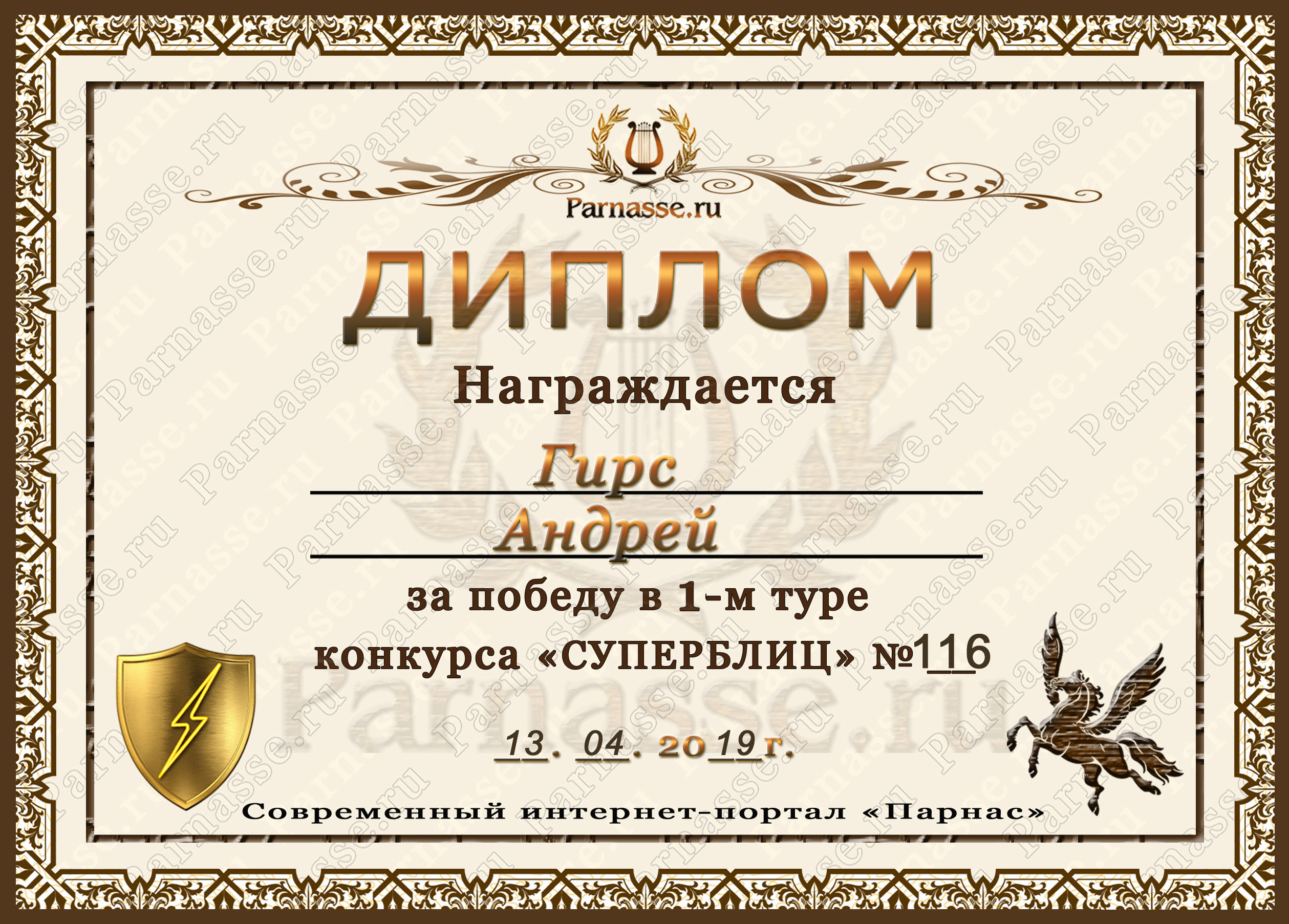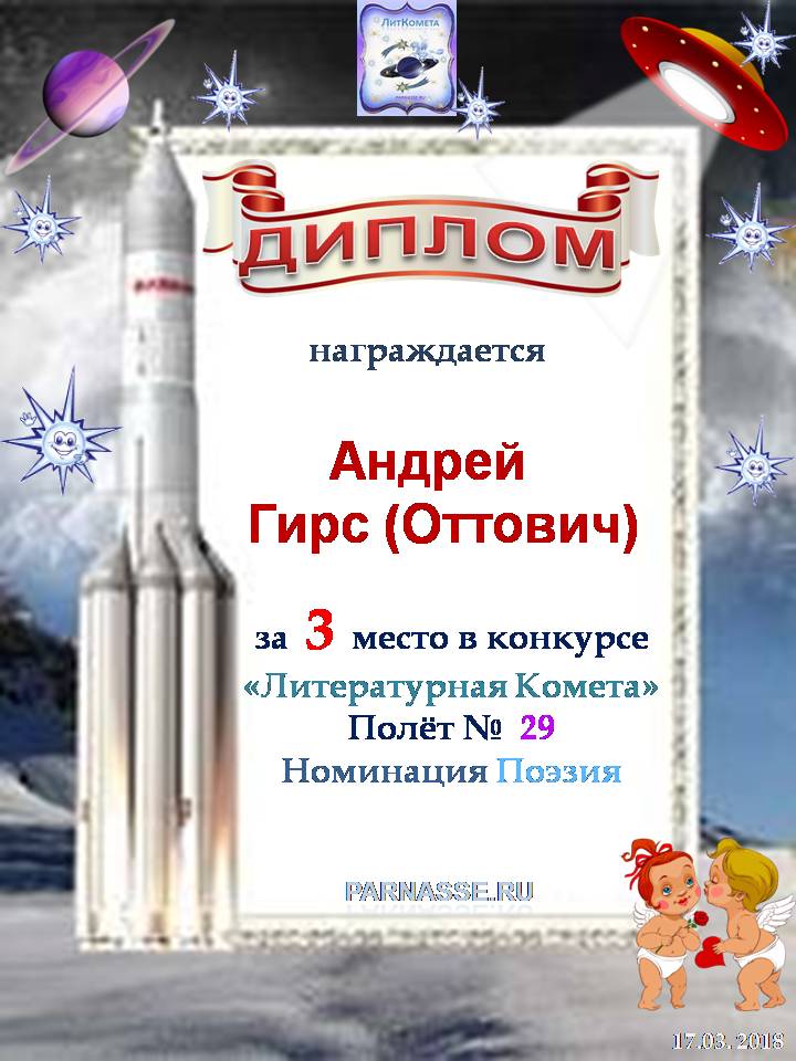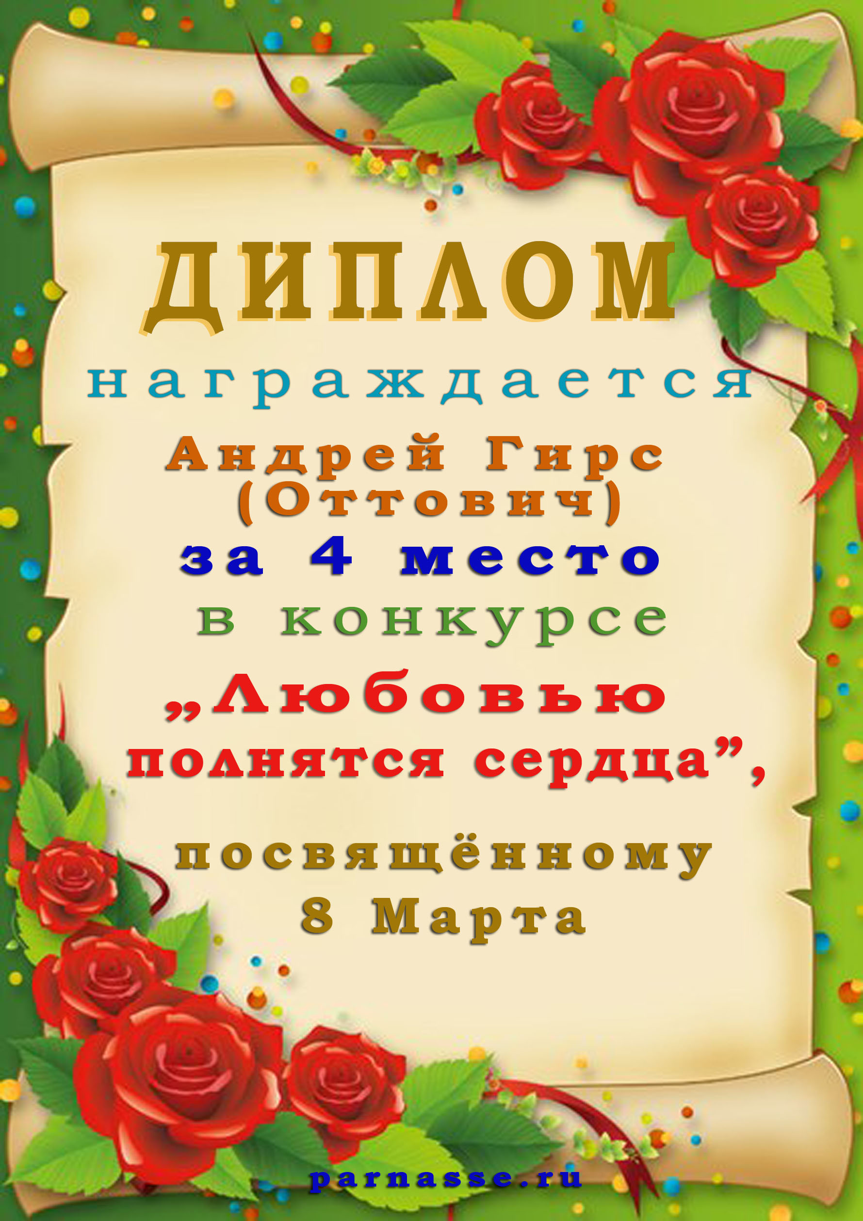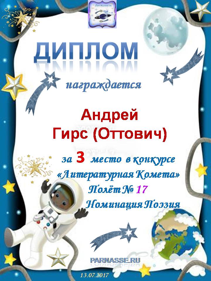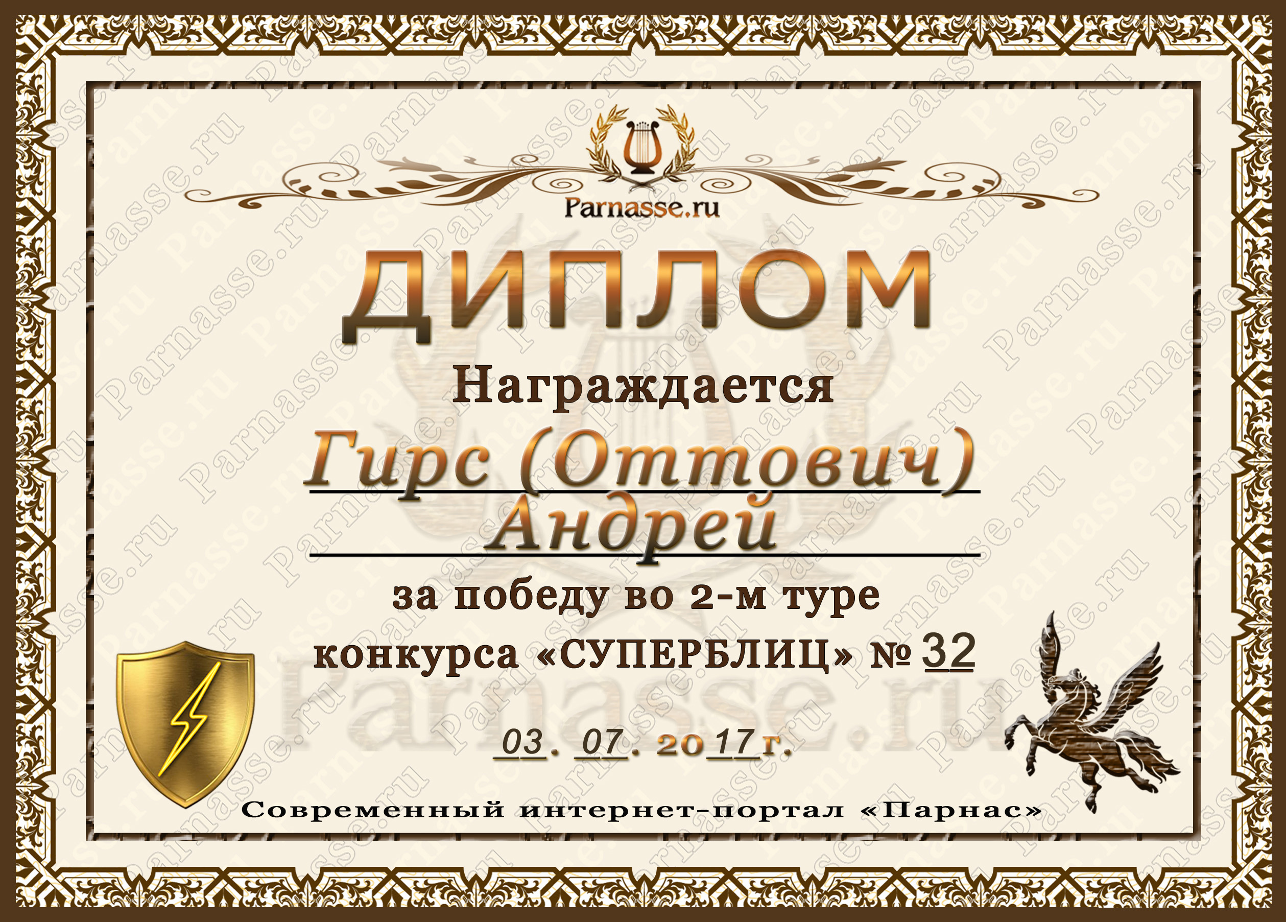 Диплом за 3 место в 97 конкурсе АКРОСТИХА!