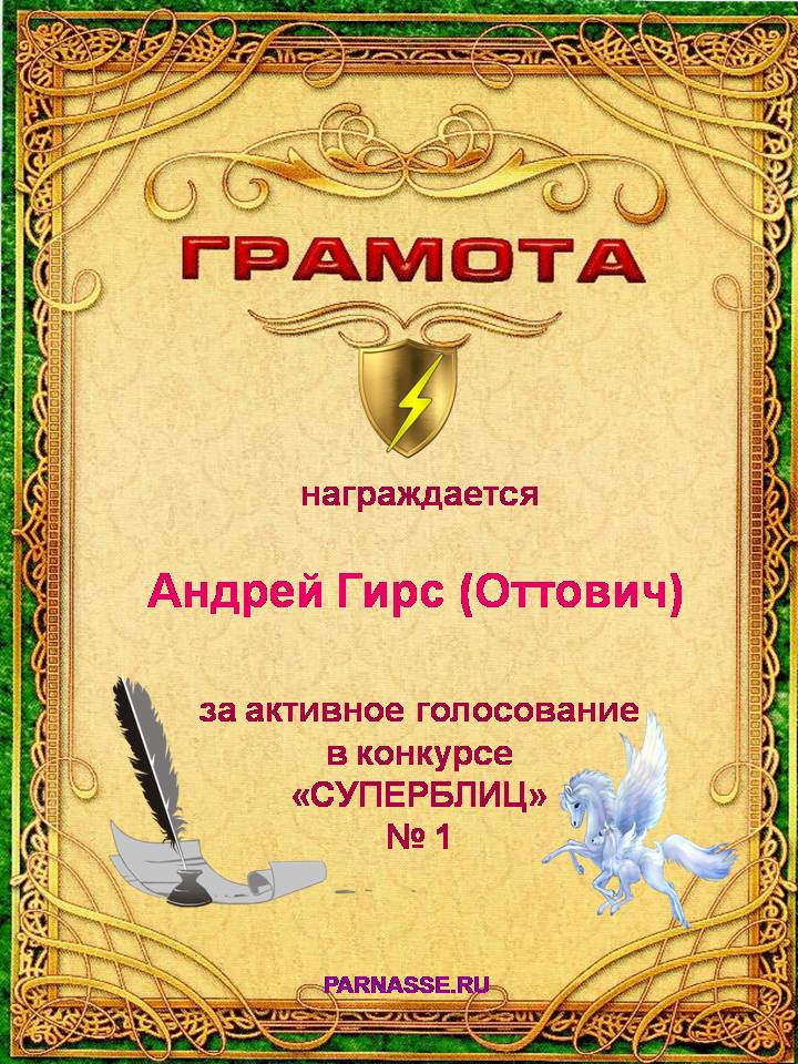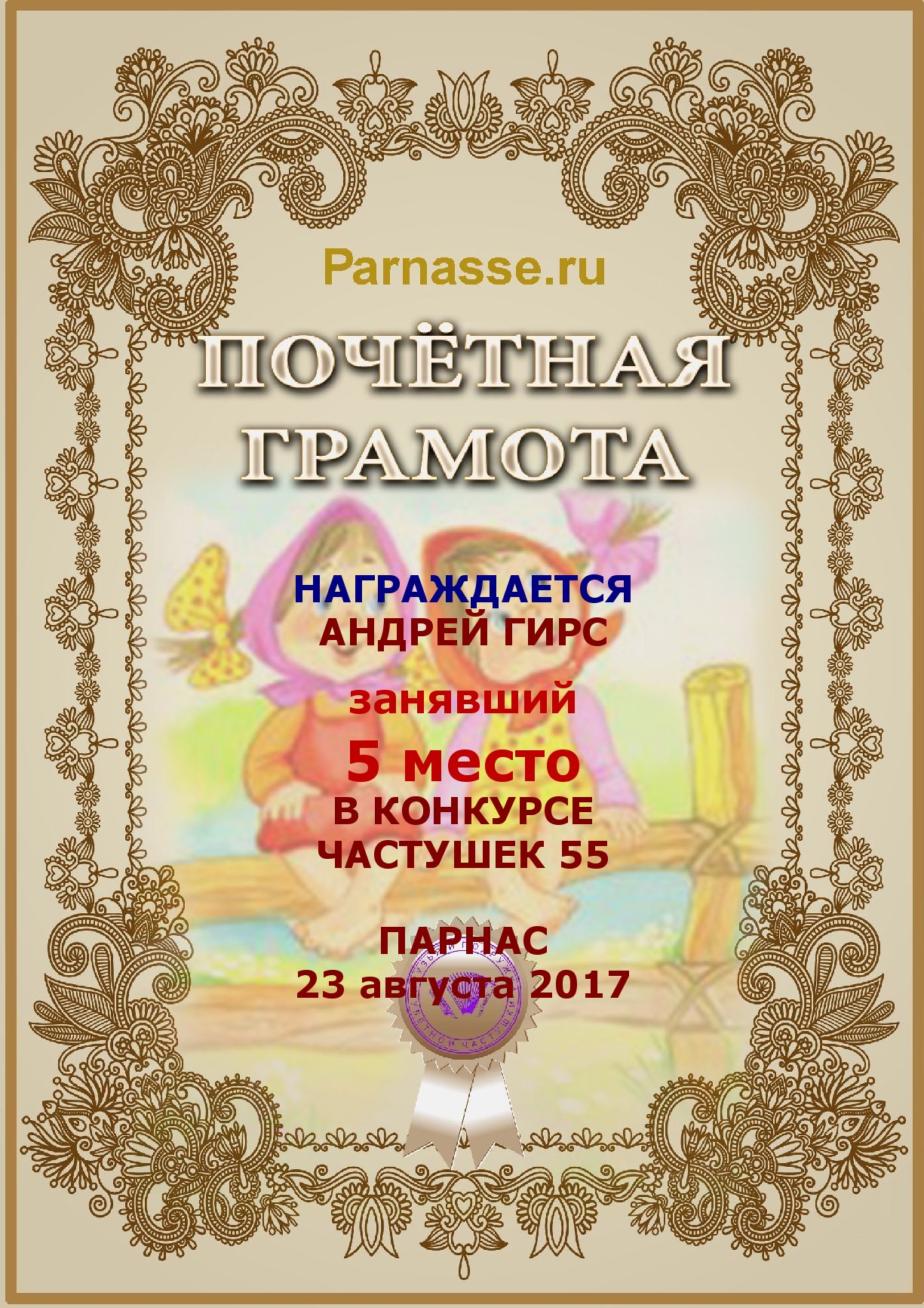 Грамота за двойное 5 место в 98 конкурсе АКРОСТИХА!