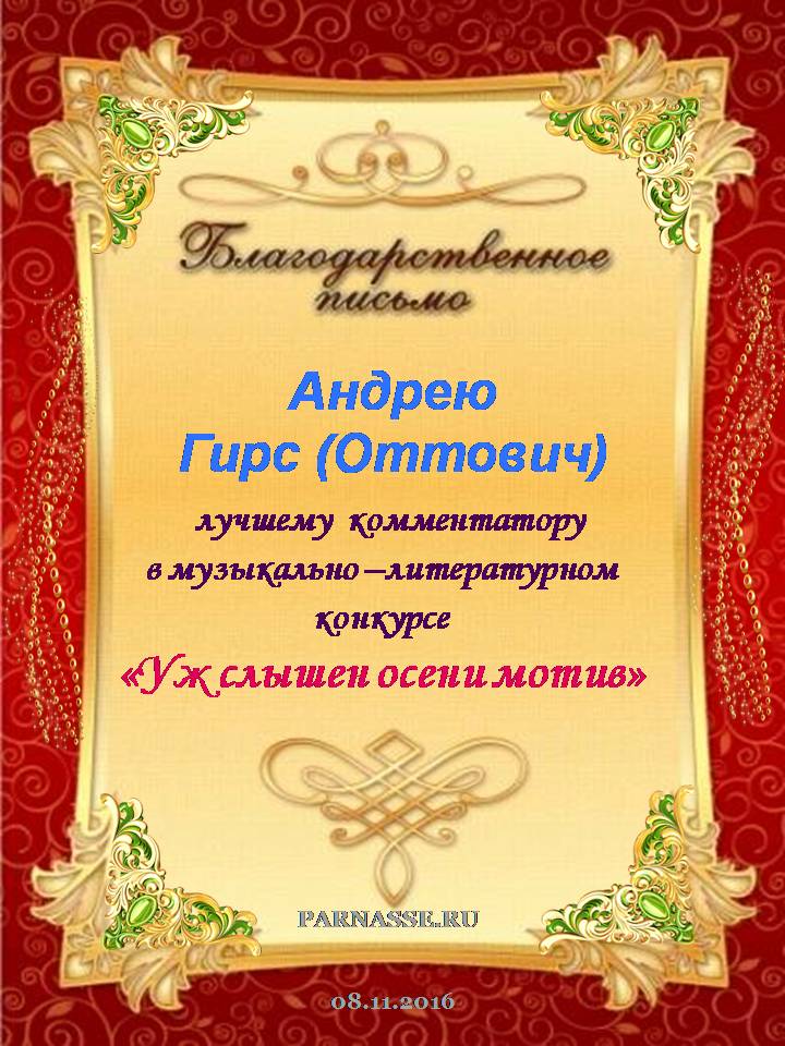 Грамота за 5 место в 92 конкурсе АКРОСТИХА (Альтернатива)!