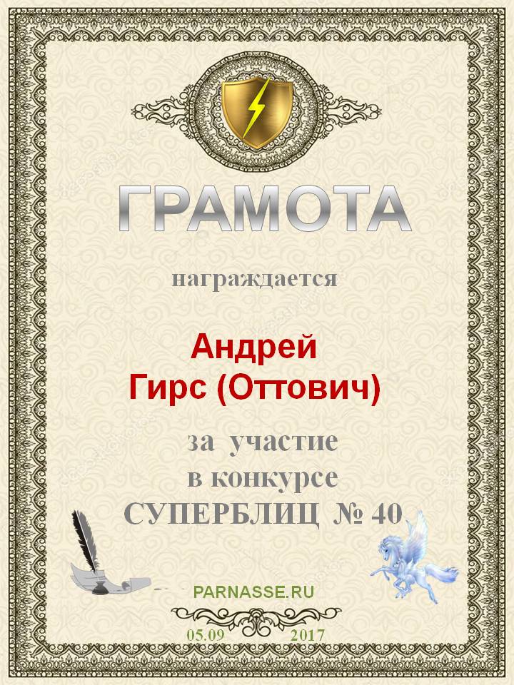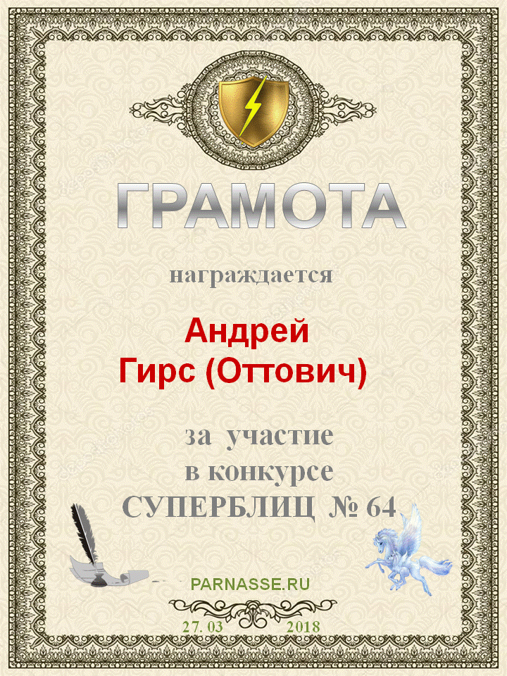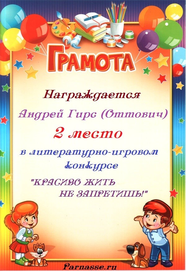 Грамота за 4 место в 94 конкурсе Акростиха.