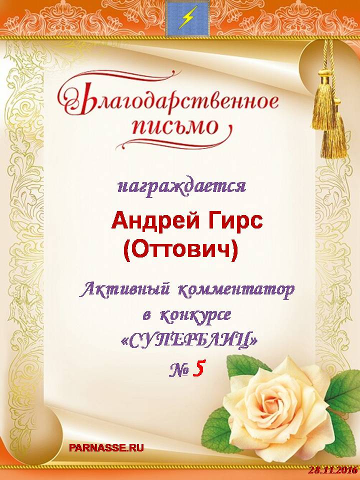 Благодарность за активное комментирование в 5 конкурсе СУПЕРБЛИЦА!