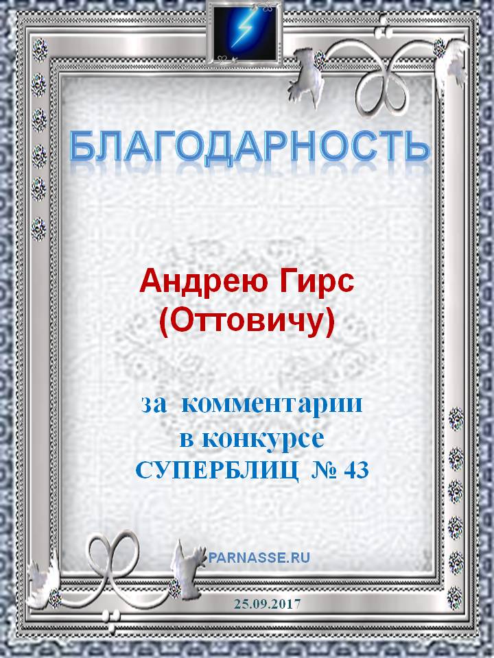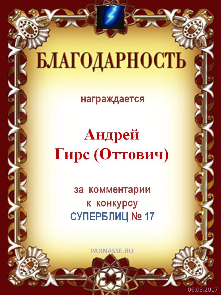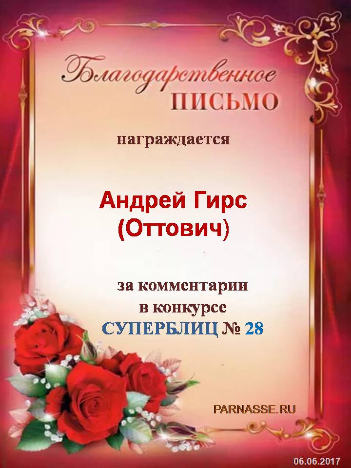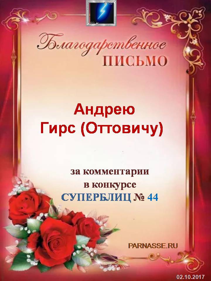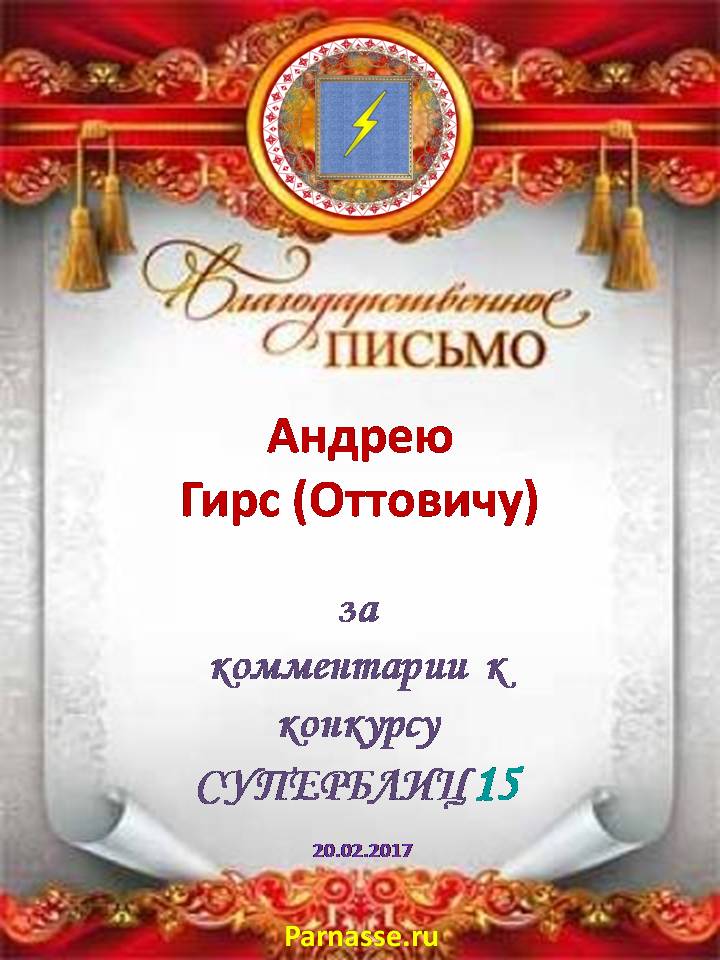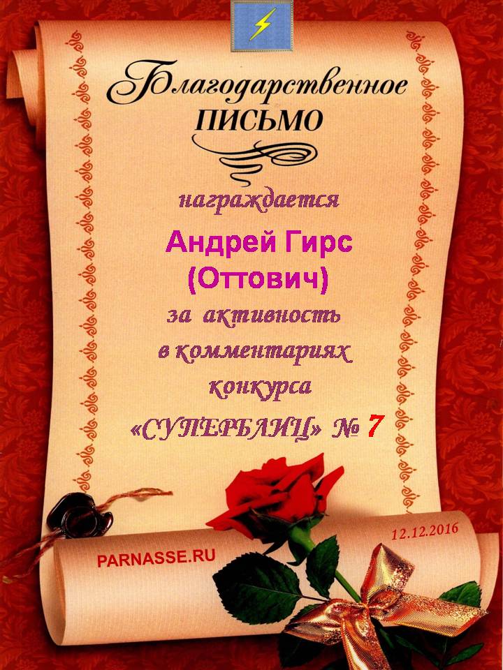 Благодарность активному комментатору в 7 конкурсе СУПЕРБЛИЦА!