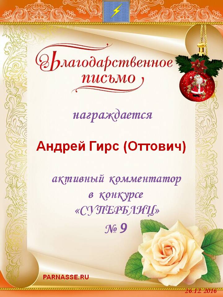 Благодарность активному комментатору в 9 конкурсе СУПЕРБЛИЦА!