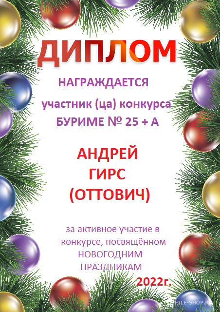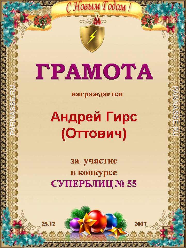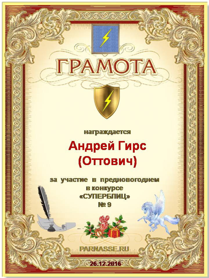 Грамота за участие в предновогоднем конкурсе СУПЕРБЛИЦА № 9!