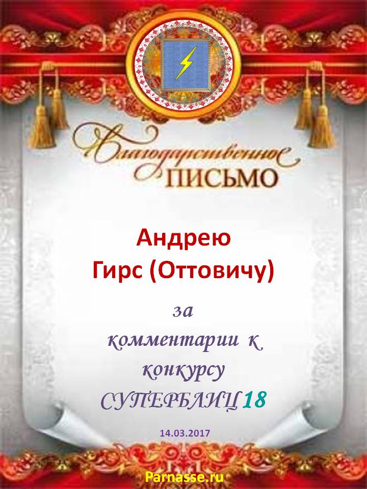 Благодарность активному комментатору в 8 конкурсе СУПЕРБЛИЦА!