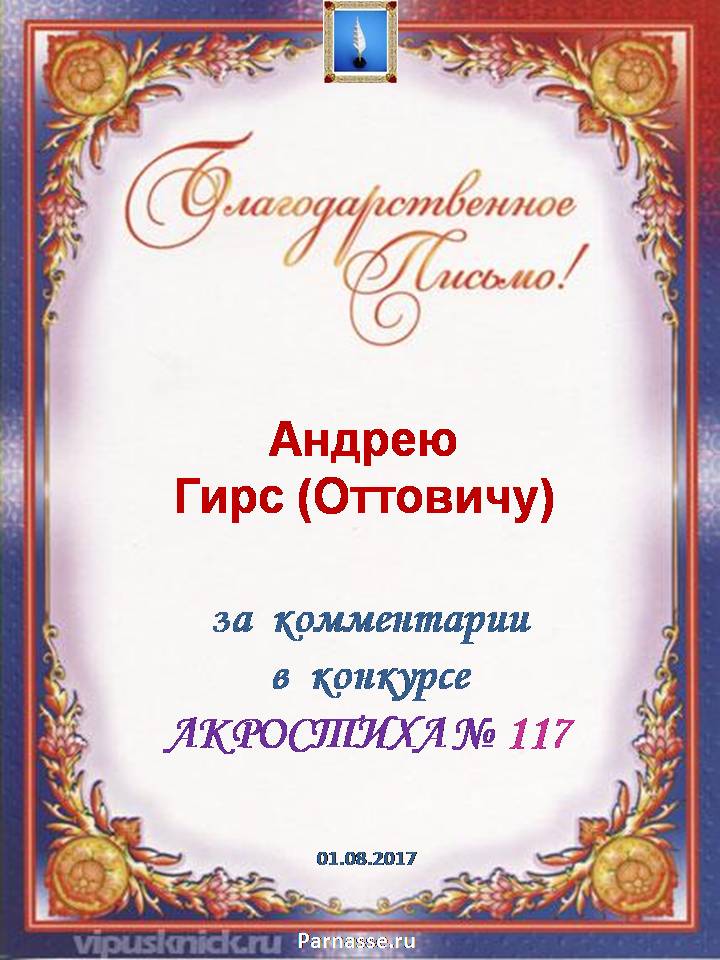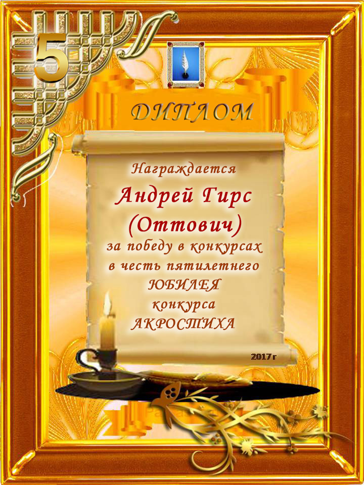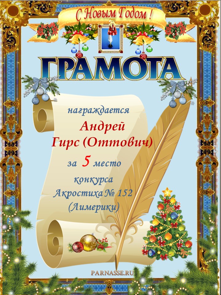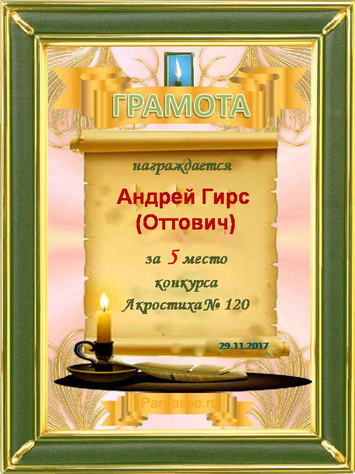 Грамота за 5 место в 101 конкурсе АКРОСТИХА!