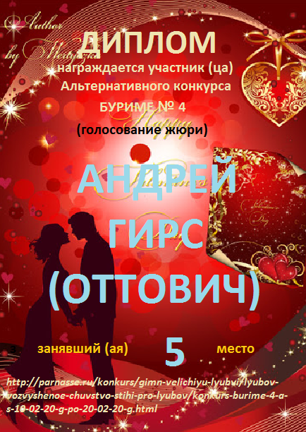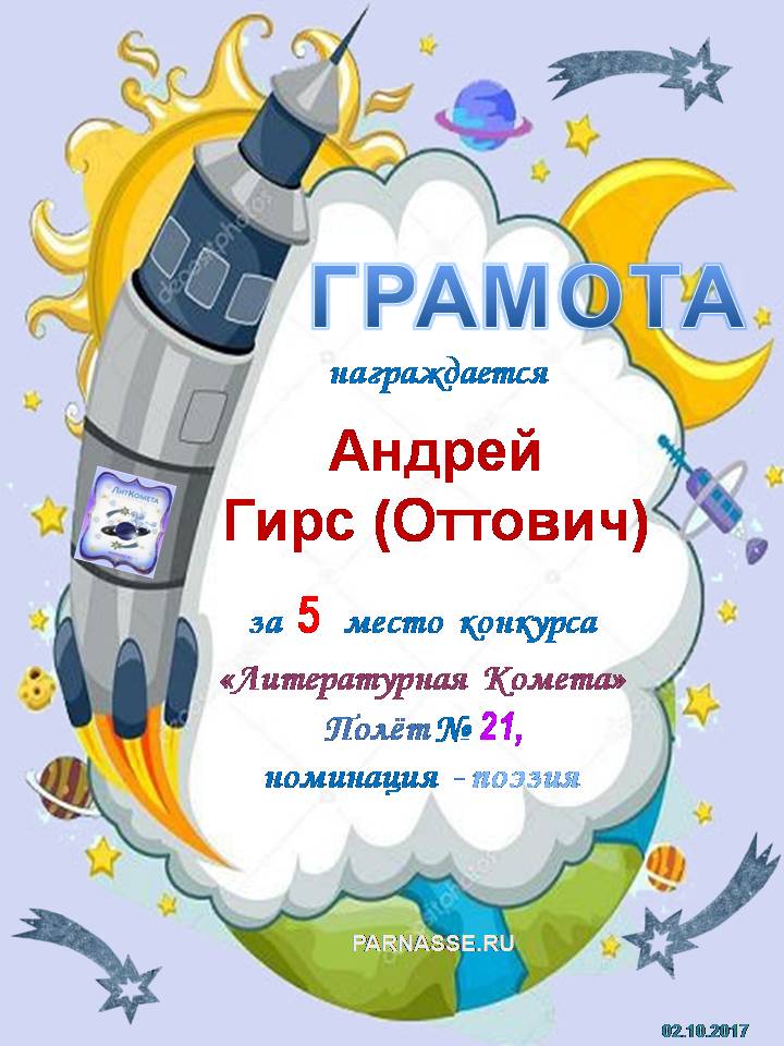 Грамота за 5 место в 95 конкурсе АКРОСТИХА (Альтернатива)!