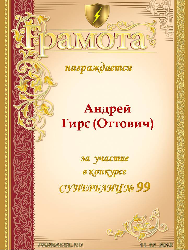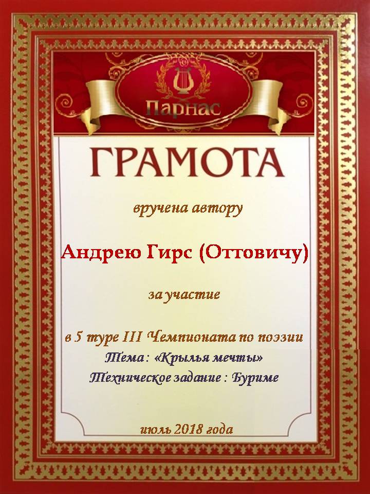 Грамота за 5 место в 99 конкурсе АКРОСТИХА!
