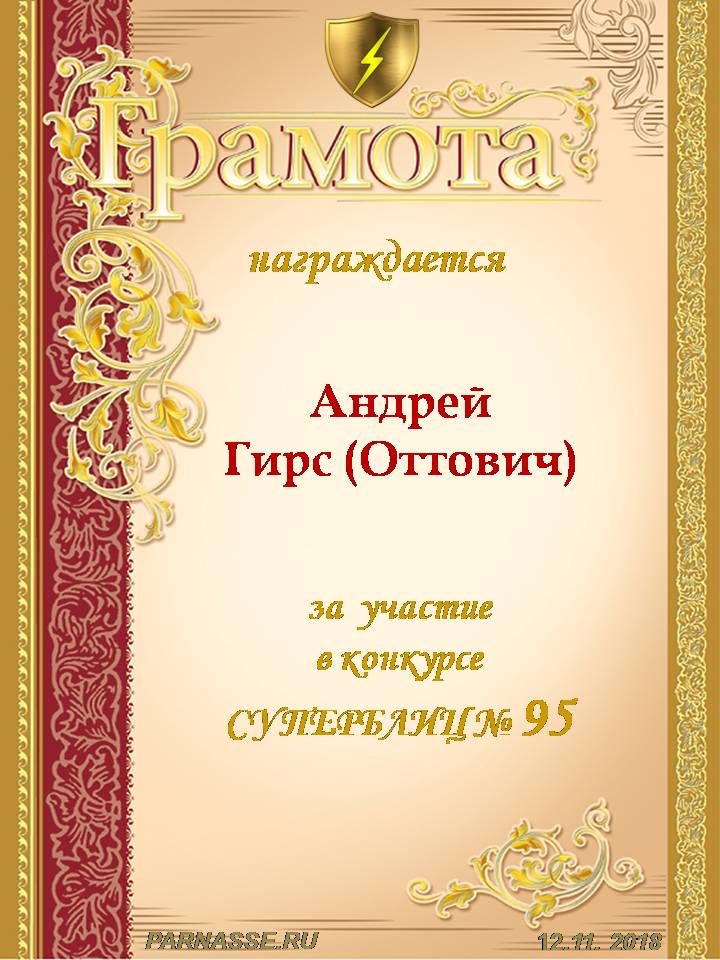Грамота за 5 место в 95 конкурсе АКРОСТИХА!