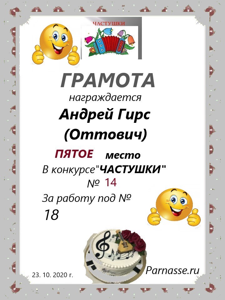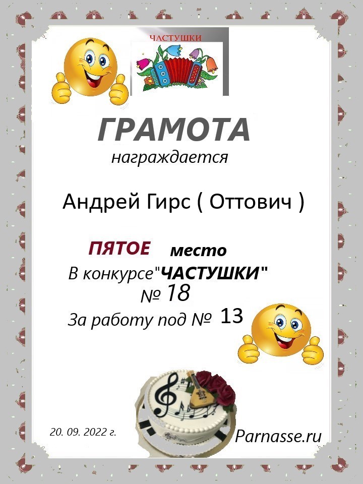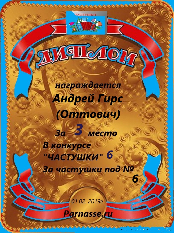 3 место в конкурсе "ЧАСТУШКИ" 17, за работу под № 13