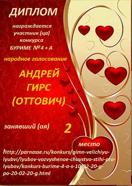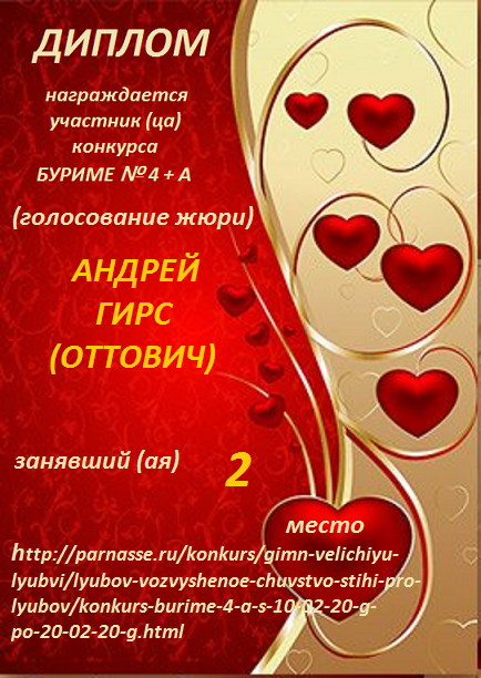 Второе место по итогам конкурса "Твой образ хранит моё сердце"