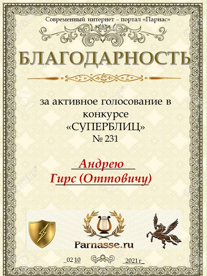 Благодарность за активное голосование в 1 конкурсе СУПЕРБЛИЦА!