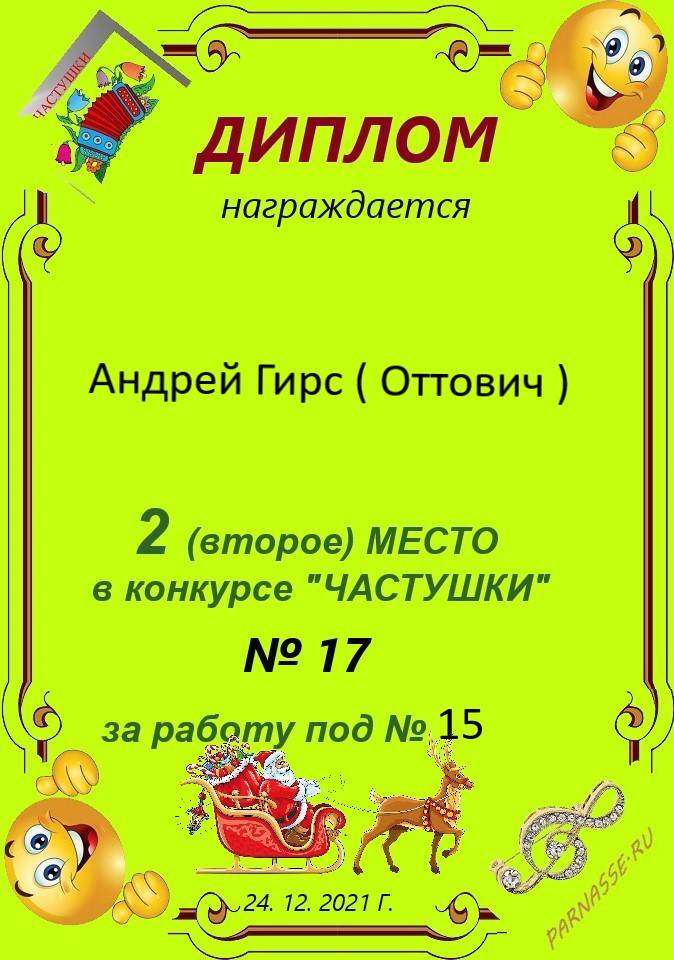 2 место в конкурсе "ЧАСТУШКИ" 17, за работу под № 15