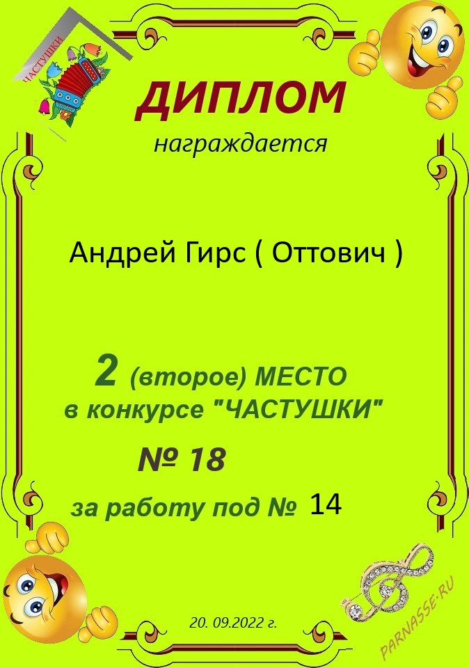 в конкурсе "ЧАСТУШКИ" № 18...за работу под № 14
