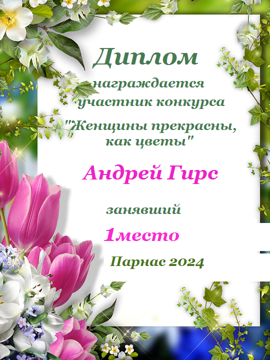 Первое место по решению Администрации и Главного судьи конкурса "Женщины прекрасны, как цветы