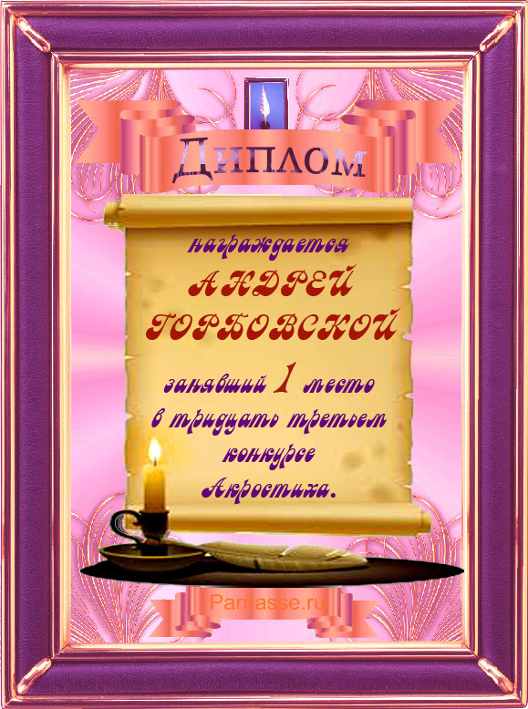 Диплом за 3 место во 2 годовом конкурсе Акростиха по итогам судейского голосования! ПОЗДРАВЛЯЮ!