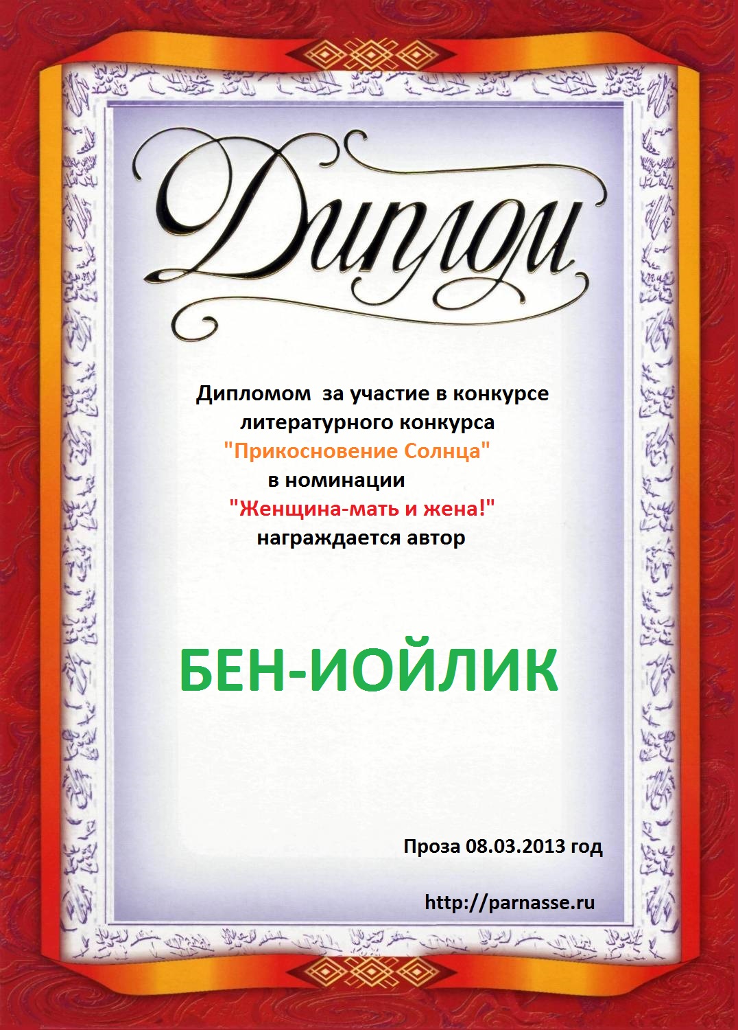 Третье место в музыкально-литературном конкурсе «Если друг оказался вдруг»! Номинация «Проза»! Произведение «Баня, башня, друзья и сосед»! Поздравляем с достойной победой, Дорогой Бен! Спасибо за активное участие в конкурсе!