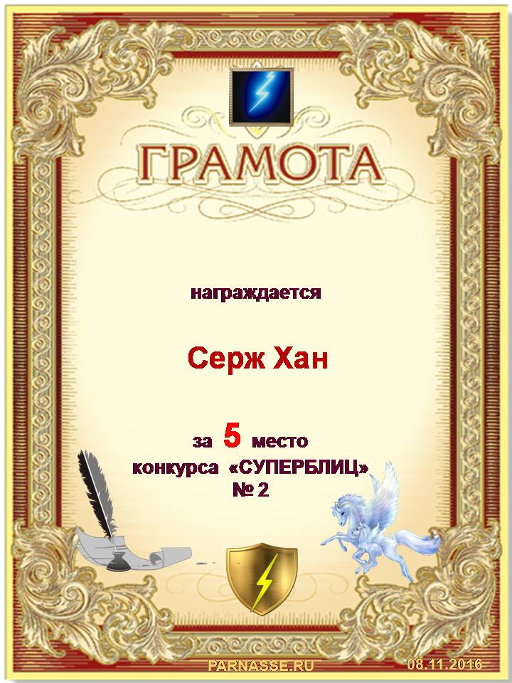 Диплом за победу во 2 туре в конкурсе СУПЕРБЛИЦА № 152! ПОЗДРАВЛЯЮ!