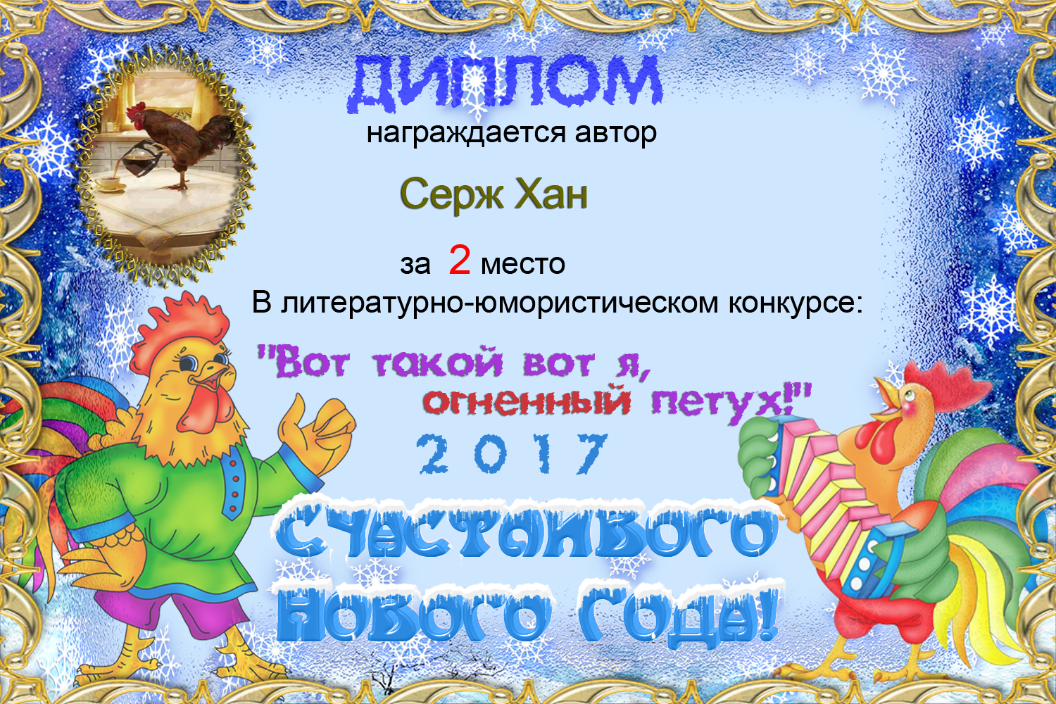 За победу в конкурсе на тему:"Вот такой вот я, огненный петух!"