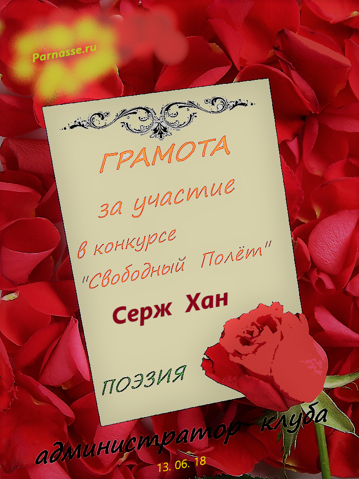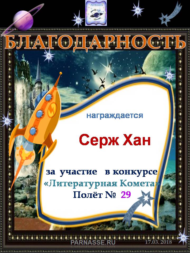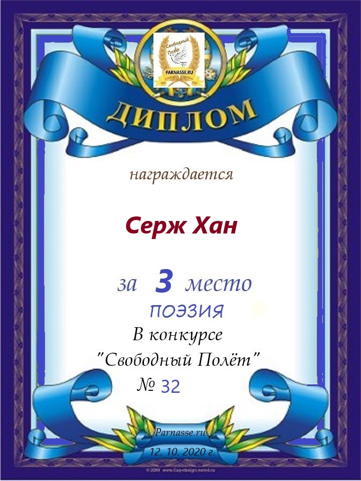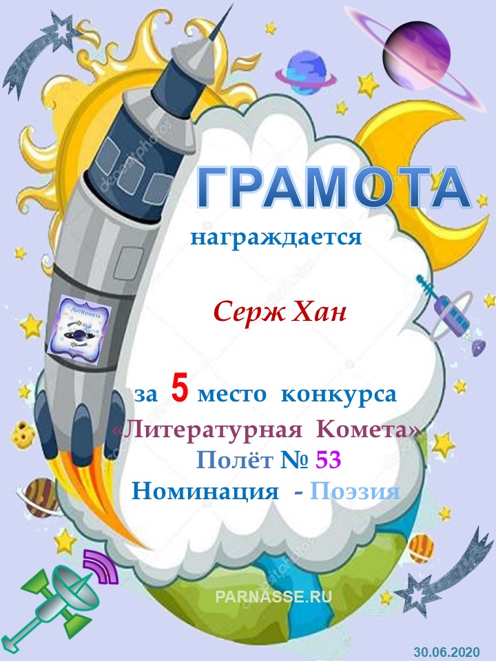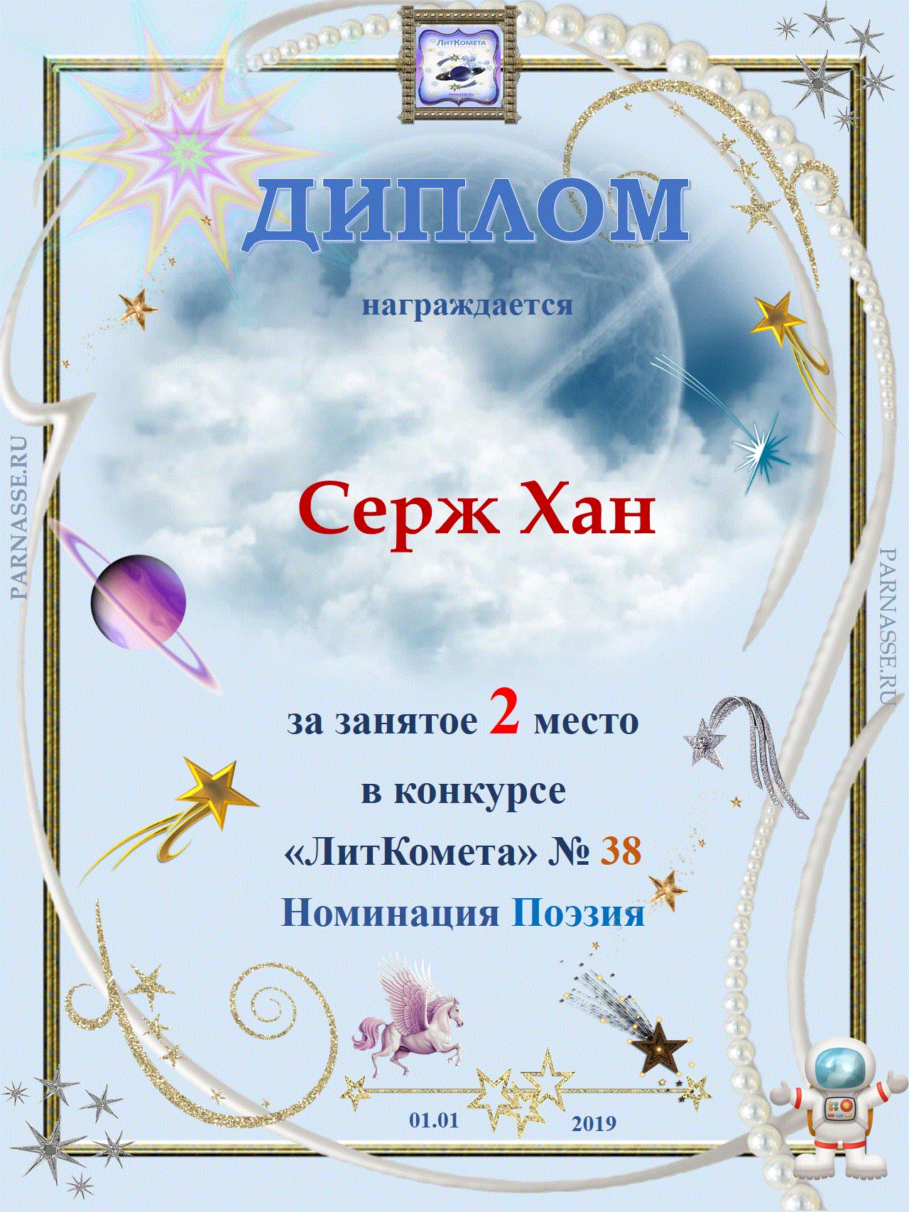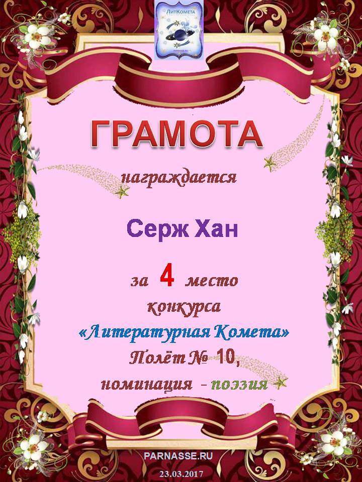 Поздравляю с занятым 3 местом в конкурсе «Литературная Комета – Полёт № 34» - номинация поэзия!