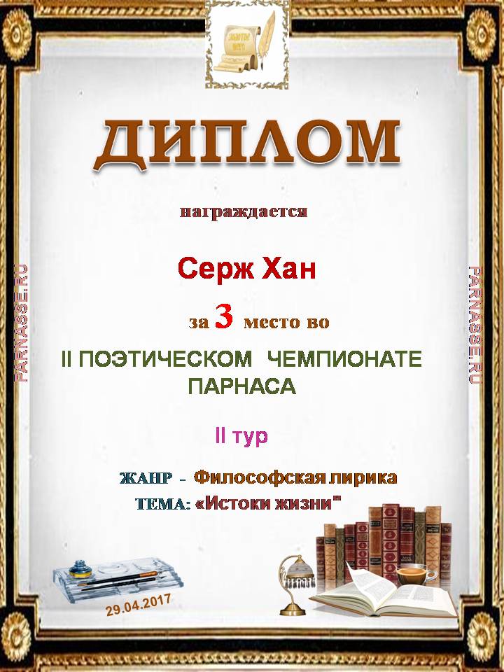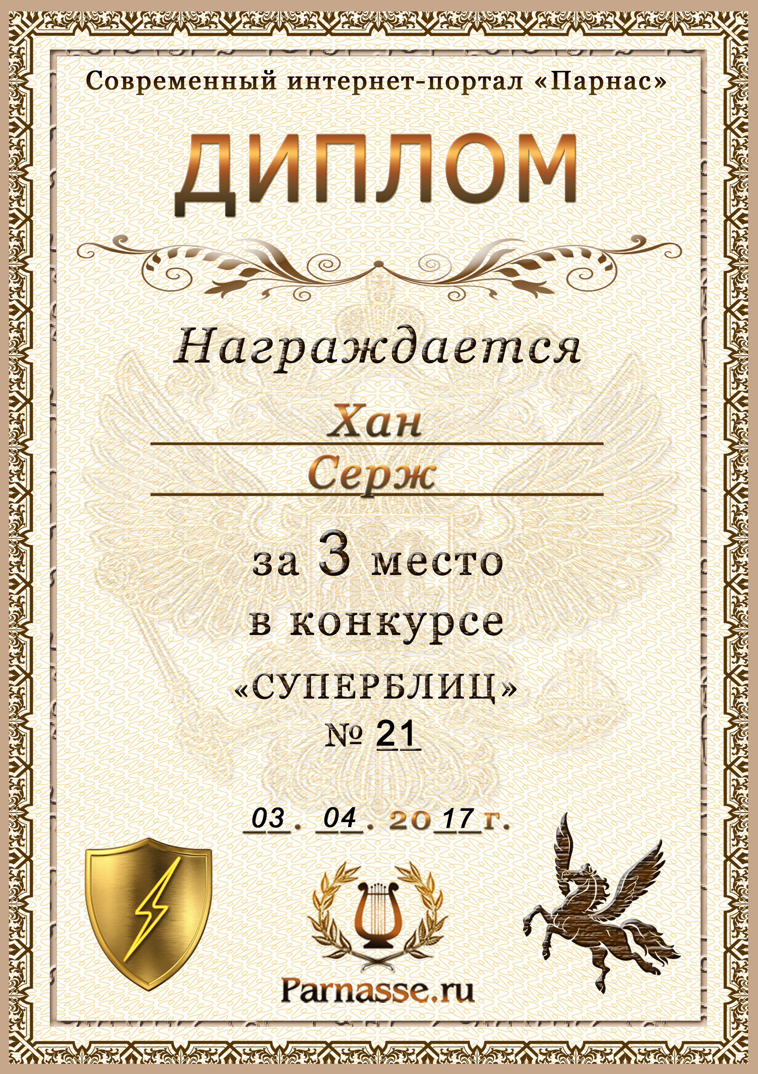 Диплом за 3-е место в номинации "ЛУЧШАЯ ДУЭЛЬ" по итогам судейского голосования в 12м конкурсе поэтических дуэлей (№ 14.1)