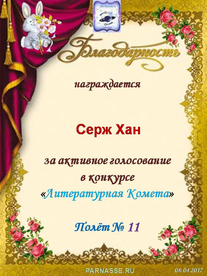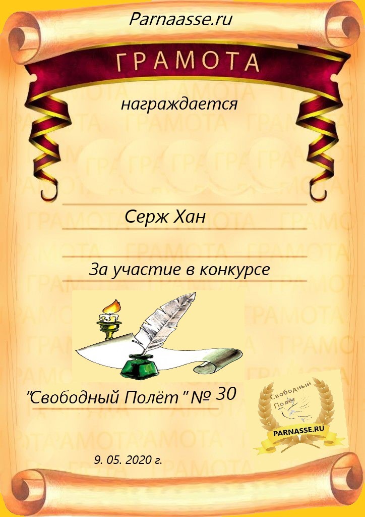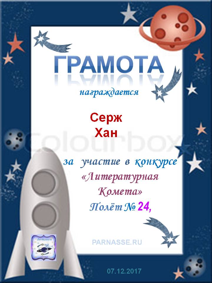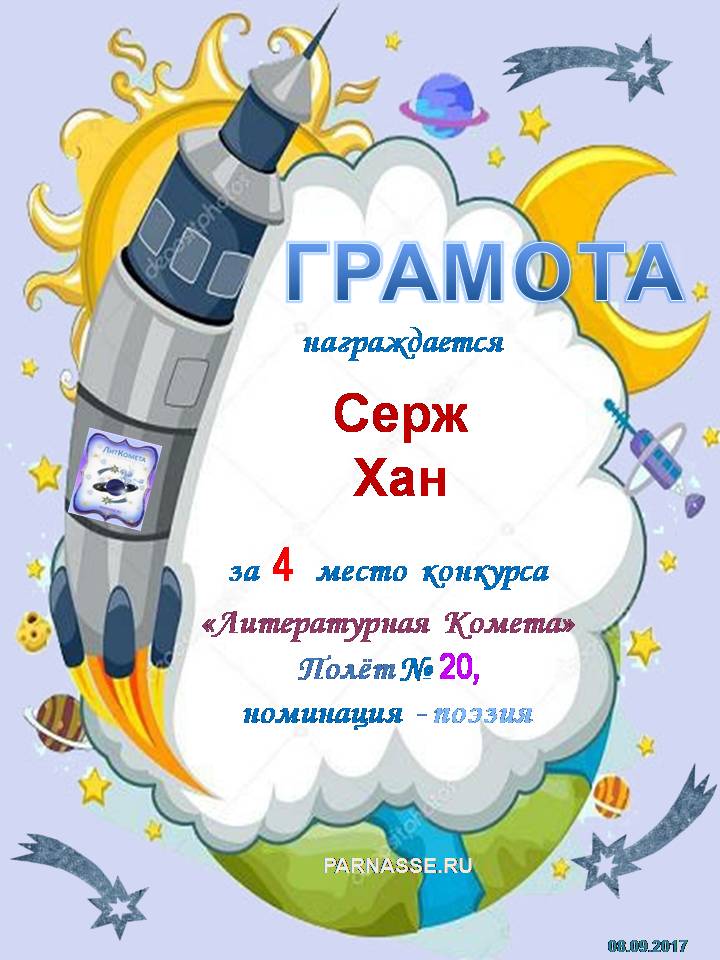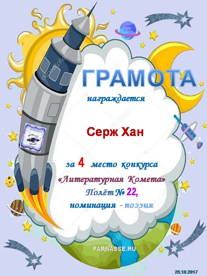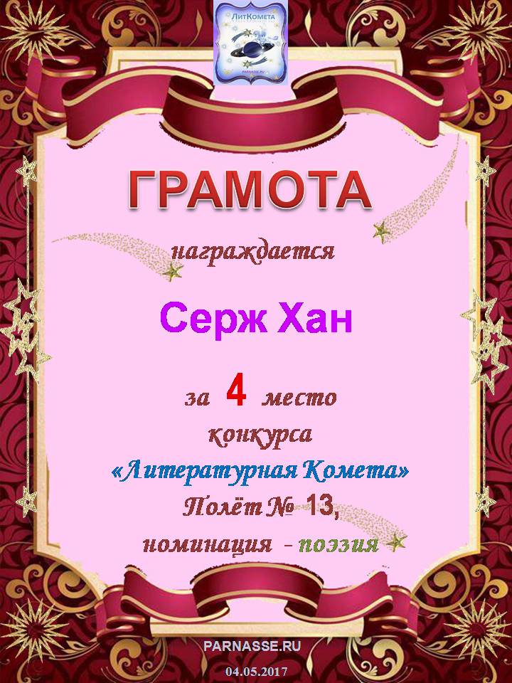 Грамота за 4 место "ЛитКомета" Полёт № 13 - поэзия