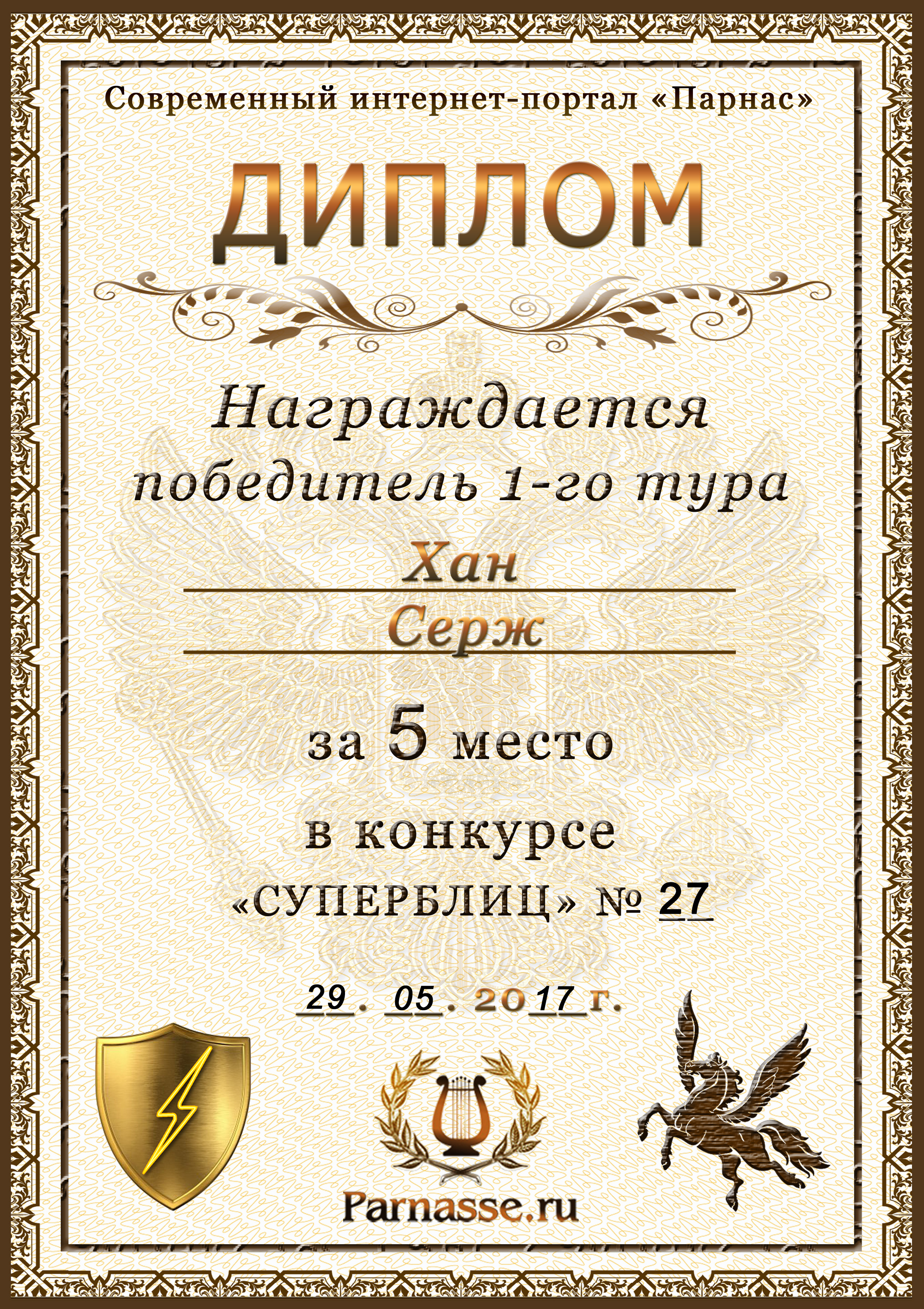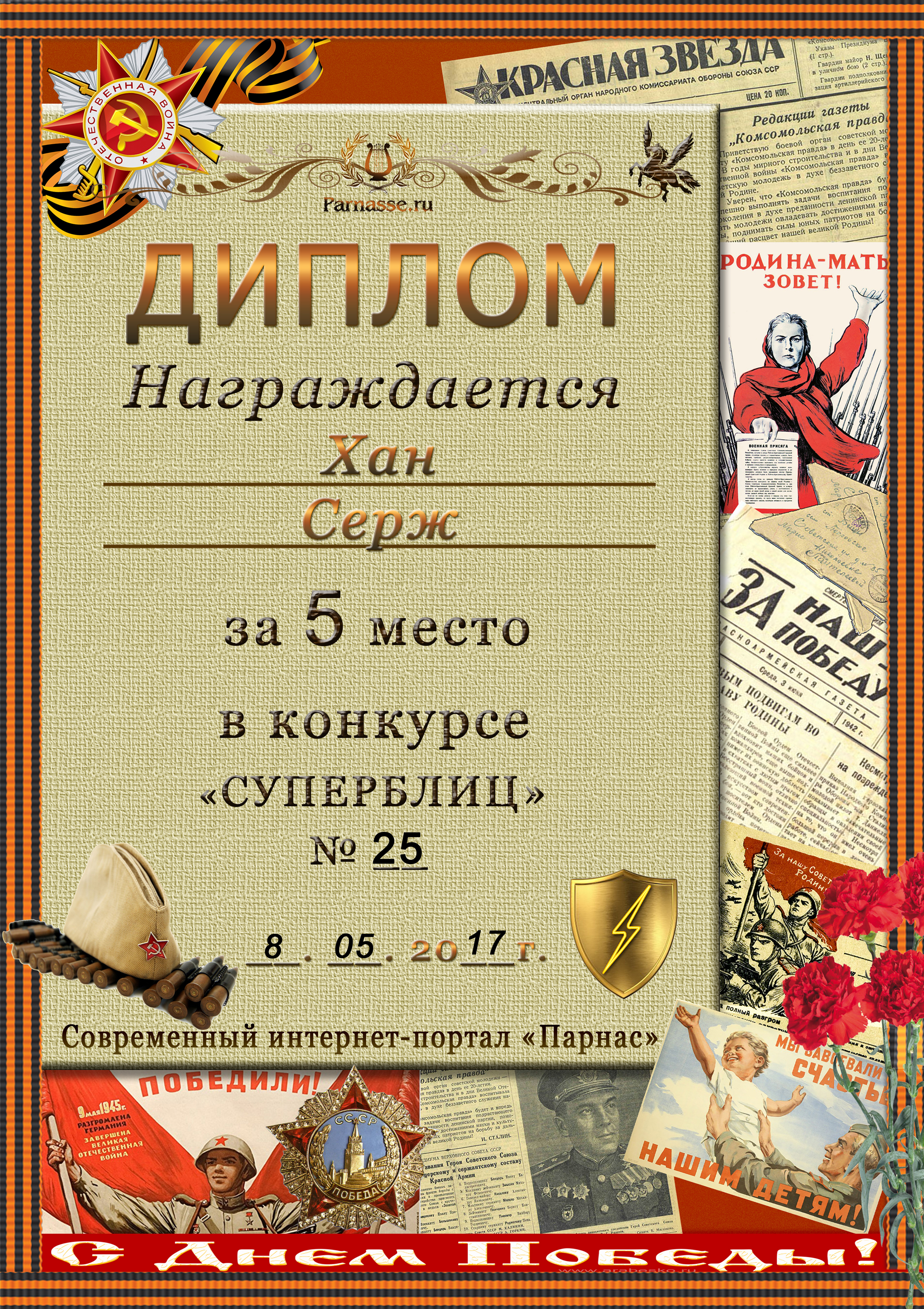 Диплом за победу во 2 туре в конкурсе СУПЕРБЛИЦА № 125! ПОЗДРАВЛЯЮ!