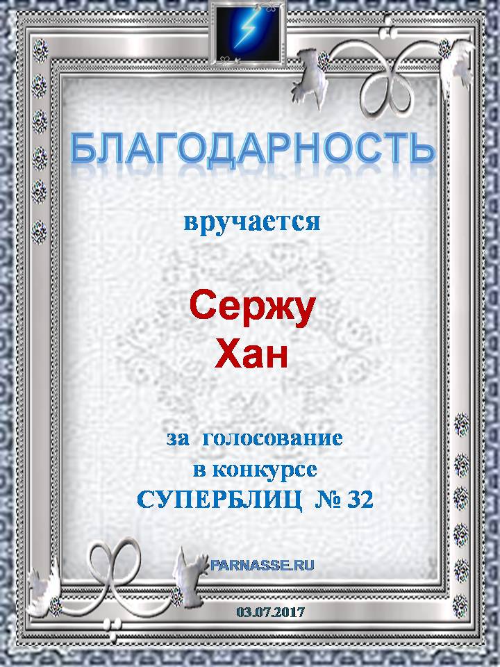 Благодарность за активное голосование в 32 конкурсе СУПЕРБЛИЦА!СПАСИБО БОЛЬШОЕ!