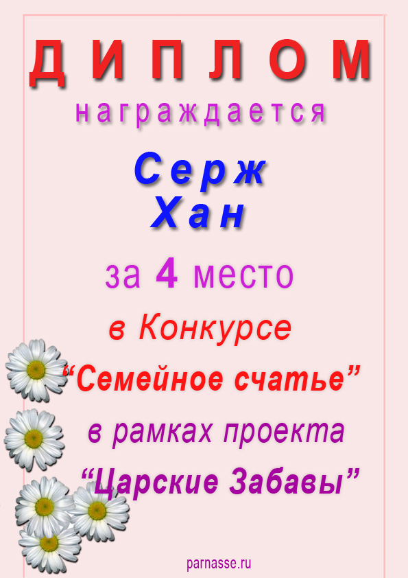 Поздравляю с занятым 4 местом в конкурсе! Спасибо за Ваше творчество!