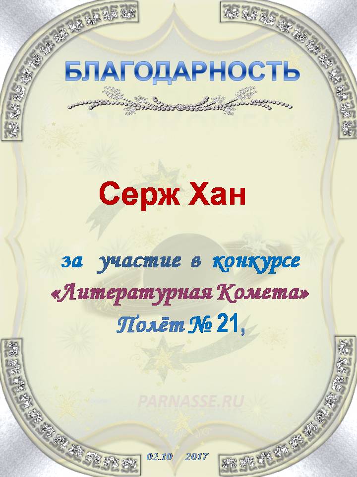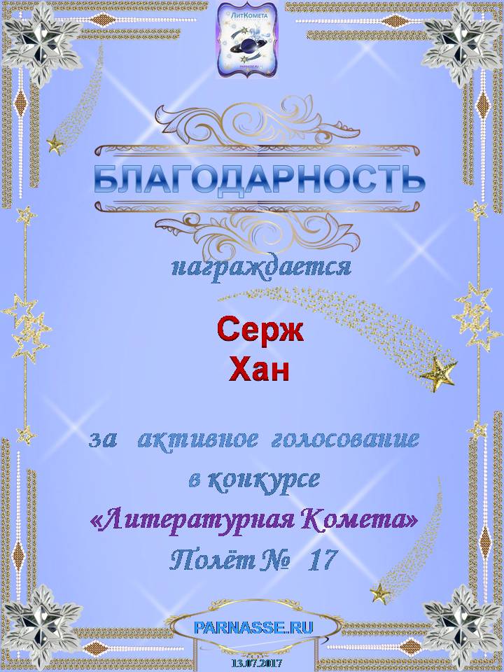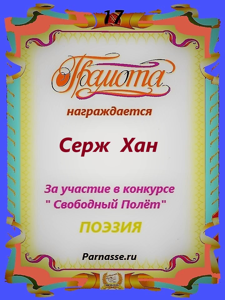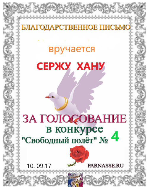 БЛАГОДАРСТВЕННАЯ ГРАМОТА за активное участие в 17м конкурсе ПОЭТИЧЕСКИХ ДУЭЛЕЙ