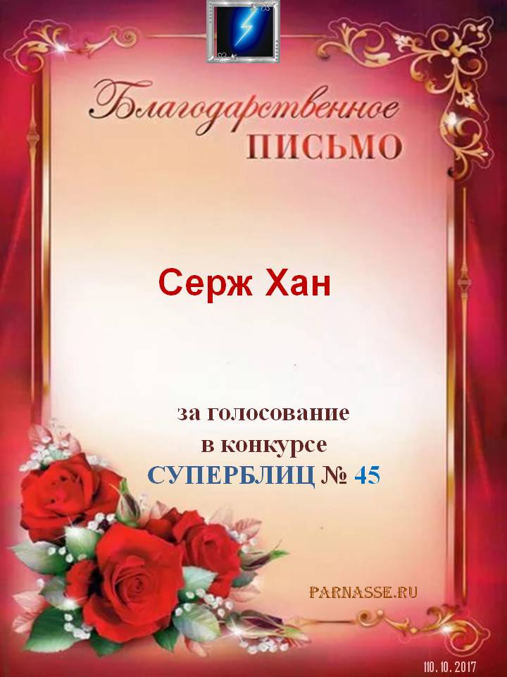Благодарность за активное голосование в 45 конкурсе СУПЕРБЛИЦА!СПАСИБО БОЛЬШОЕ!