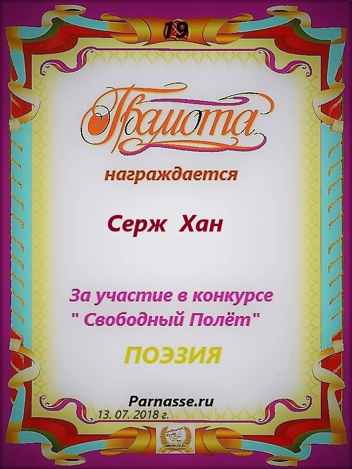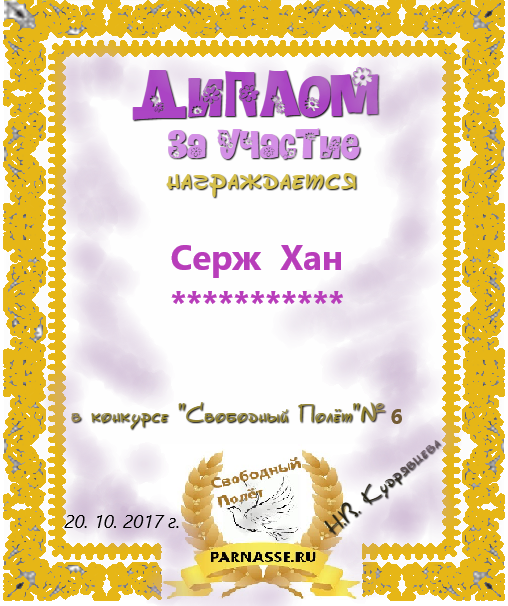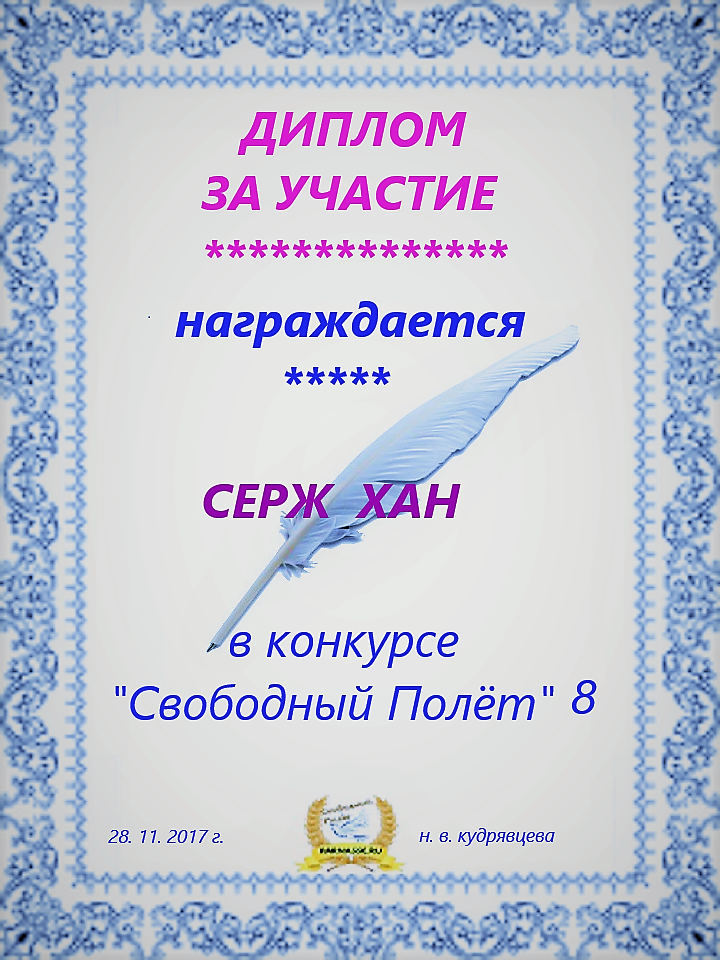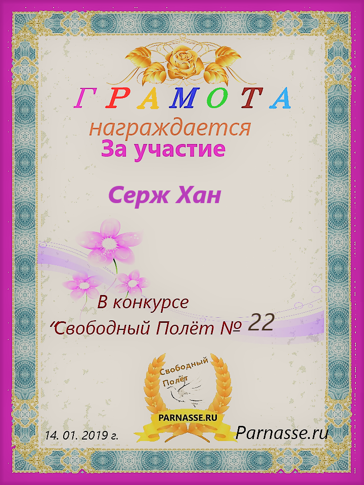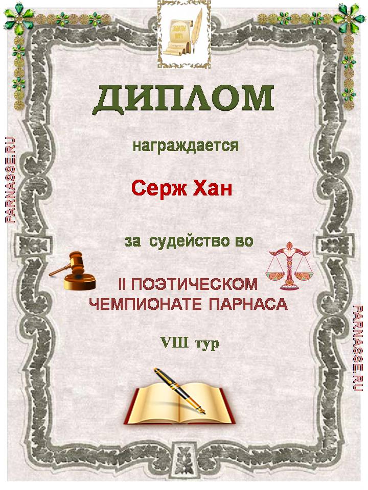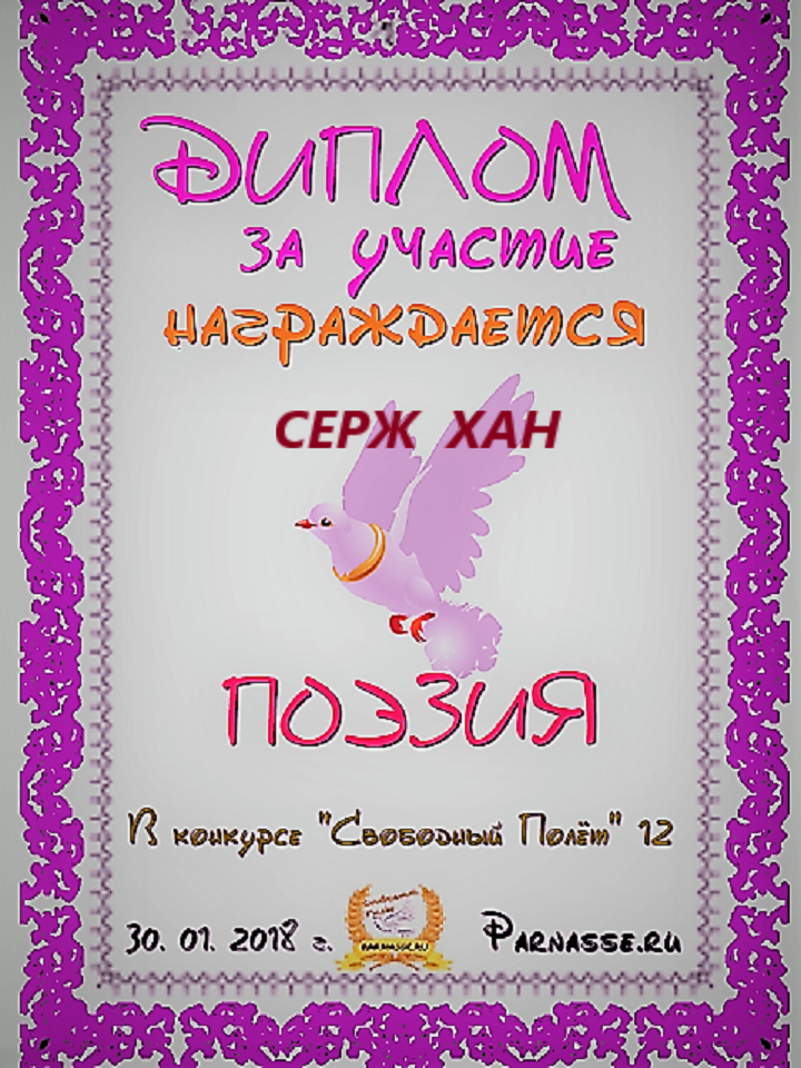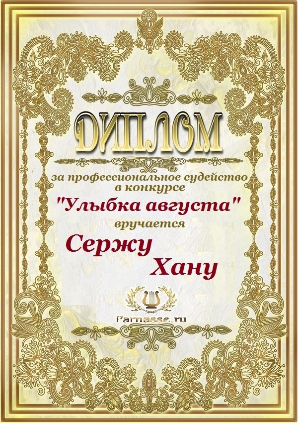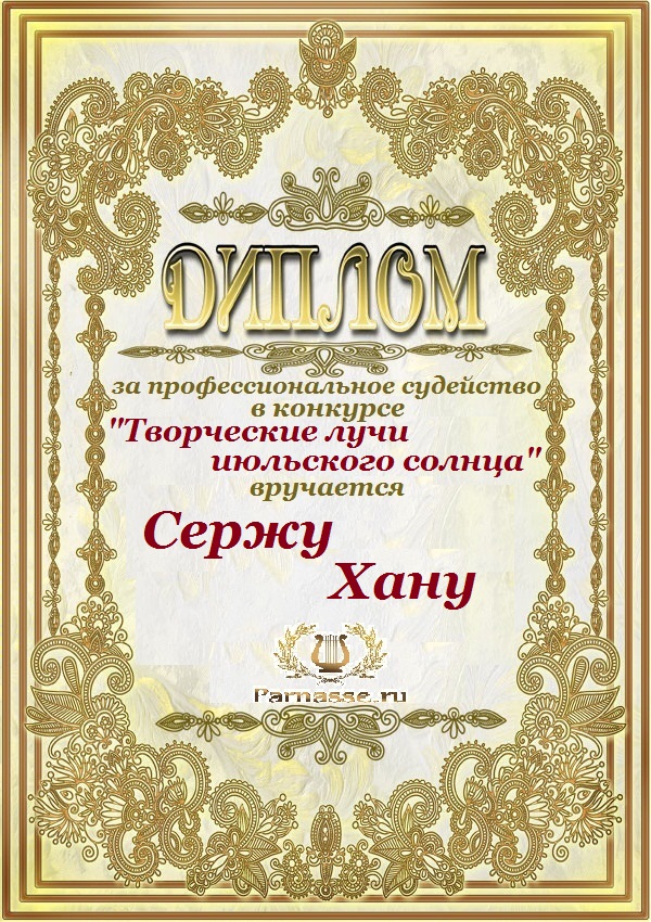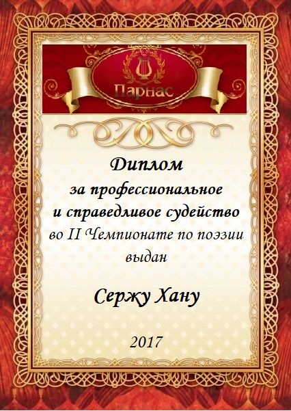 ДИПЛОМ ЗА ПРОФЕССИОНАЛЬНОЕ СУДЕЙСТВО ЧЕТЫРНАДЦАТОГО КОНКУРСА ПОЭТИЧЕСКИХ ДУЭЛЕЙ