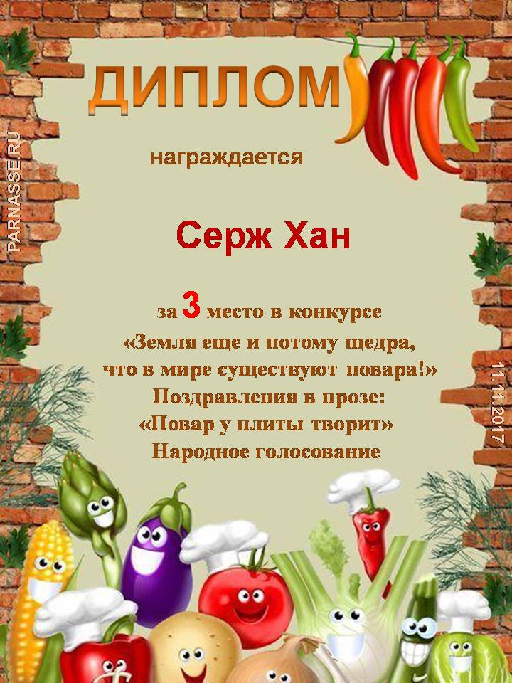 Поздравляем с 3 местом в конкурсе! Номинация "Поздравления в прозе: Повар у плиты творит!" - народное голосование.
