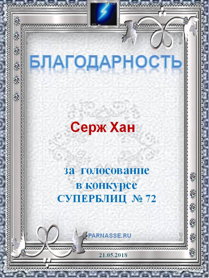 Благодарность за активное голосование в 72 конкурсе СУПЕРБЛИЦА!СПАСИБО БОЛЬШОЕ!