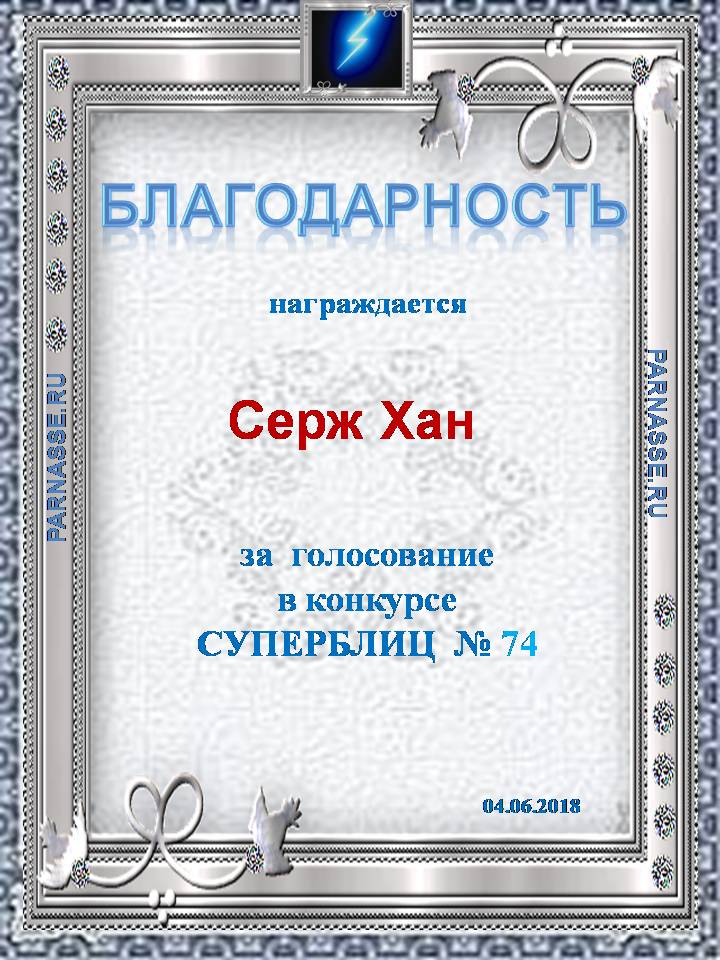 Благодарность за активное голосование в 74 конкурсе СУПЕРБЛИЦА!СПАСИБО БОЛЬШОЕ!