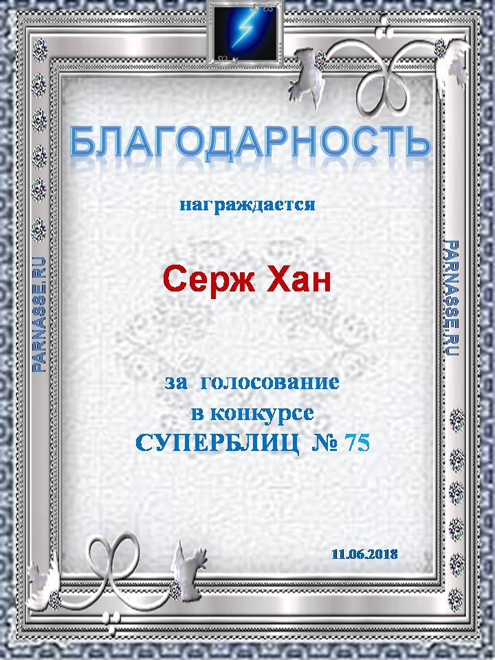 Благодарность за активное голосование в 75 конкурсе СУПЕРБЛИЦА!СПАСИБО БОЛЬШОЕ!