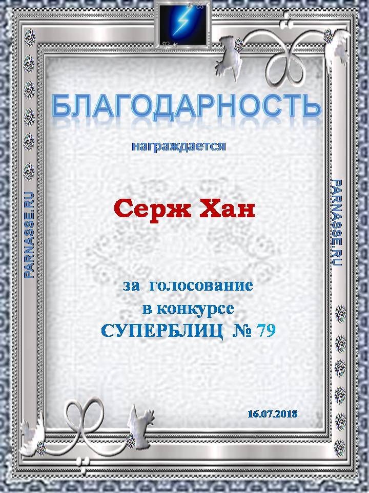 Благодарность за активное голосование в 79 конкурсе СУПЕРБЛИЦА!СПАСИБО БОЛЬШОЕ!
