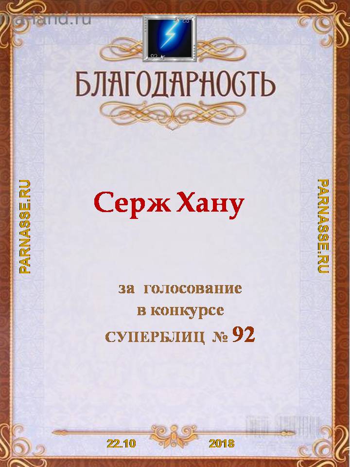 Благодарность за активное голосование в 92 конкурсе СУПЕРБЛИЦА!СПАСИБО БОЛЬШОЕ!