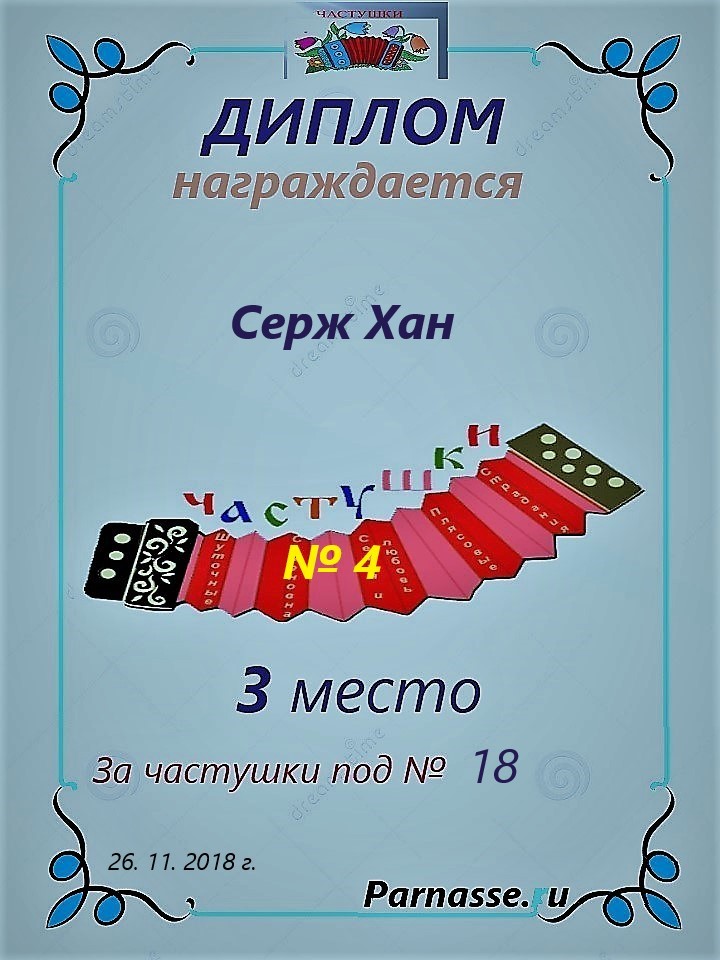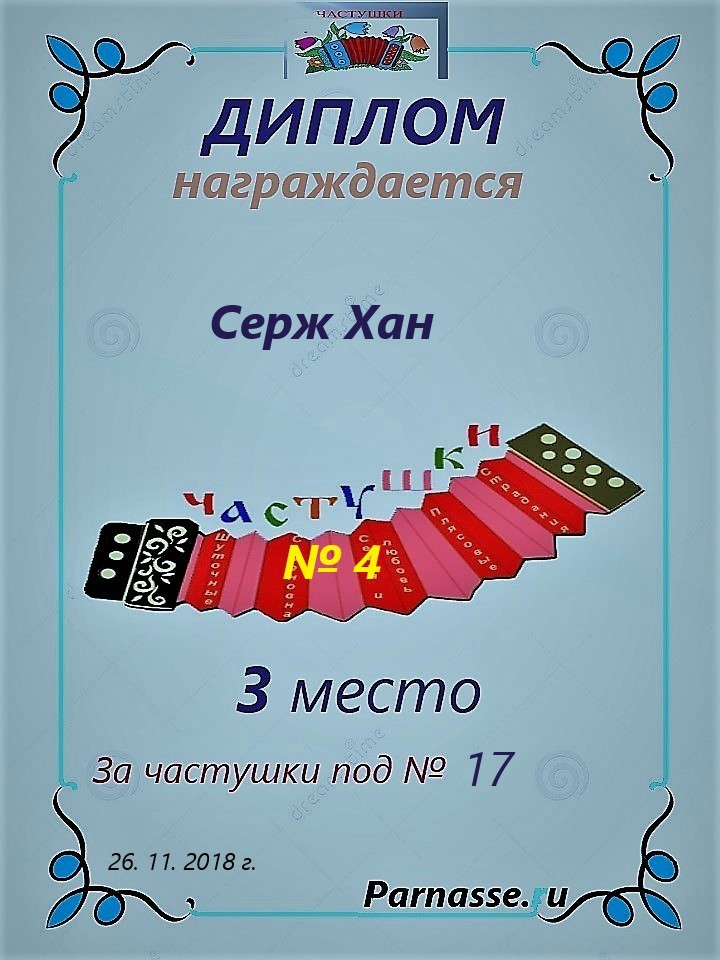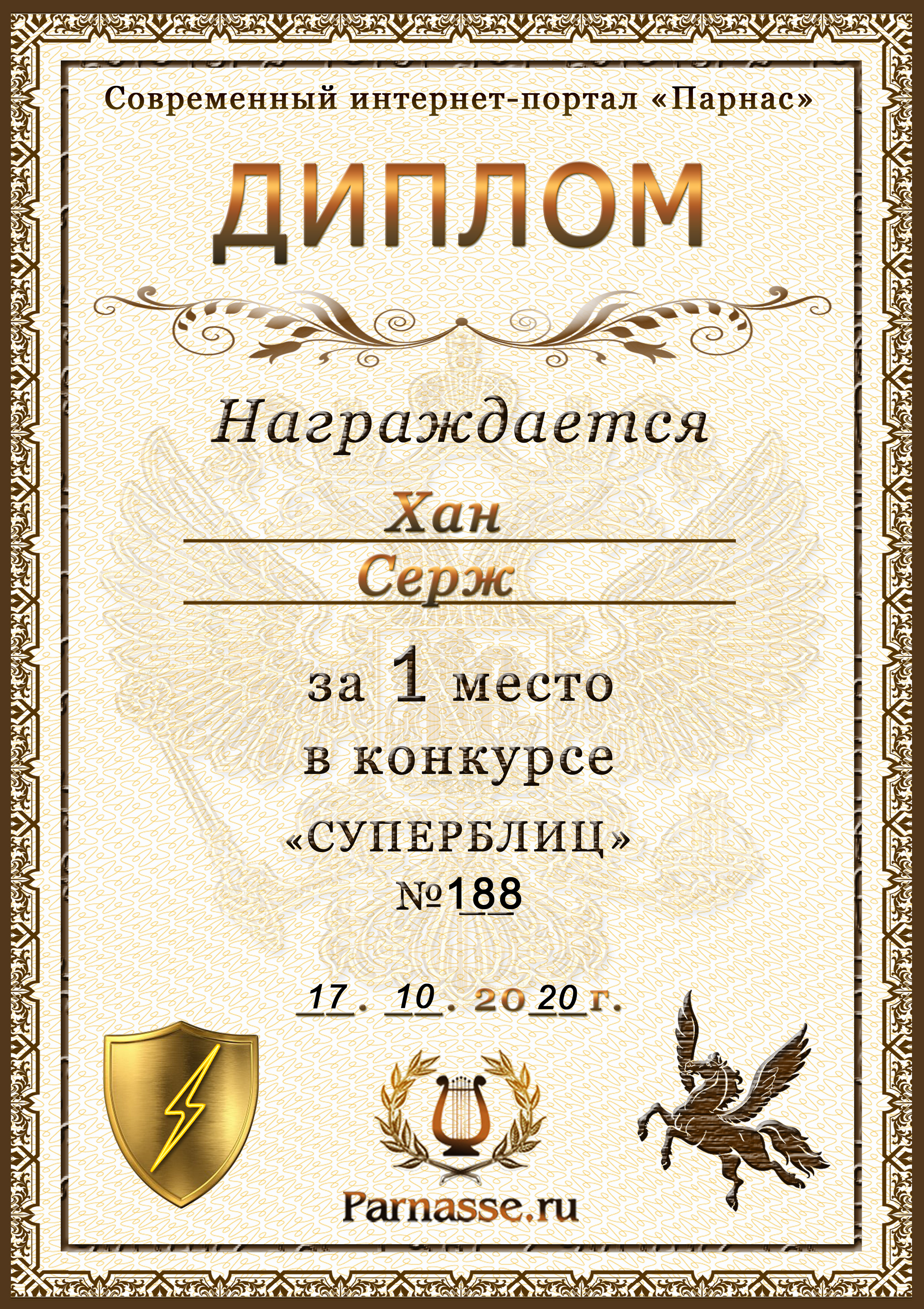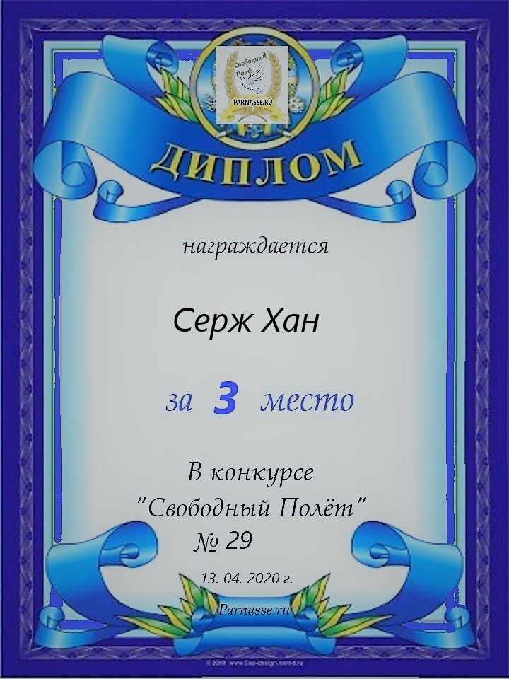 Диплом за 3-е место в номинации "ЛУЧШАЯ ДУЭЛЬ" по итогам судейского голосования в 12м конкурсе поэтических дуэлей (№ 19.2)
