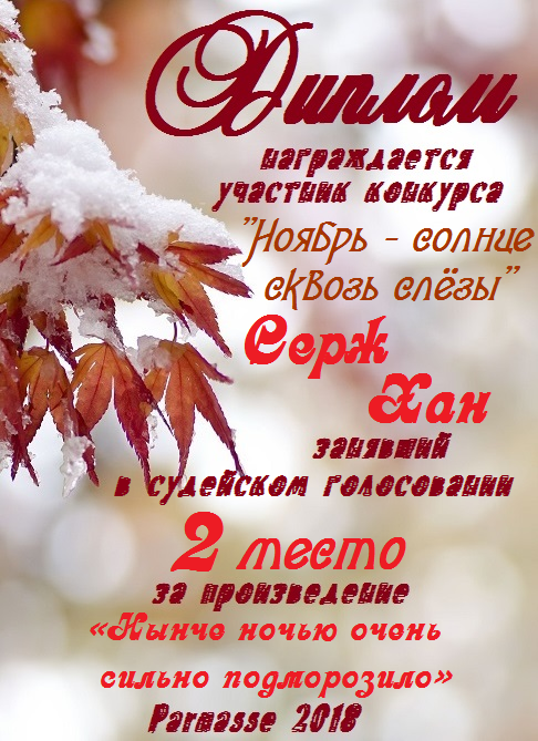Поздравляю со 2 местом в номинации - Поэзия! Спасибо за Ваше творчество!