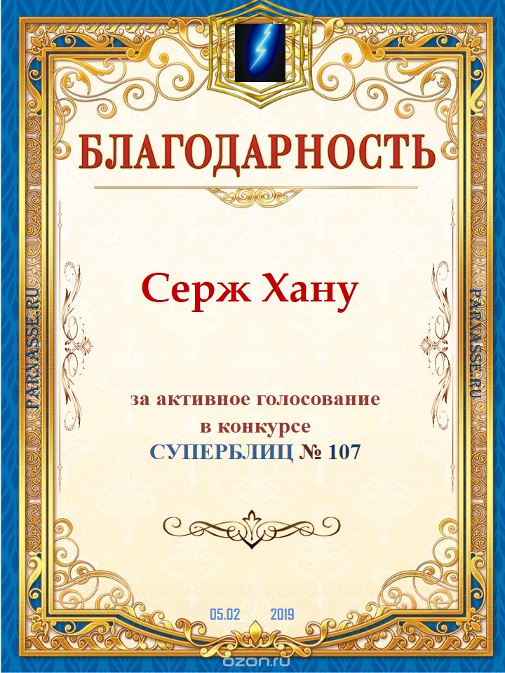 Благодарность за активное голосование в 107 конкурсе СУПЕРБЛИЦА!СПАСИБО БОЛЬШОЕ!