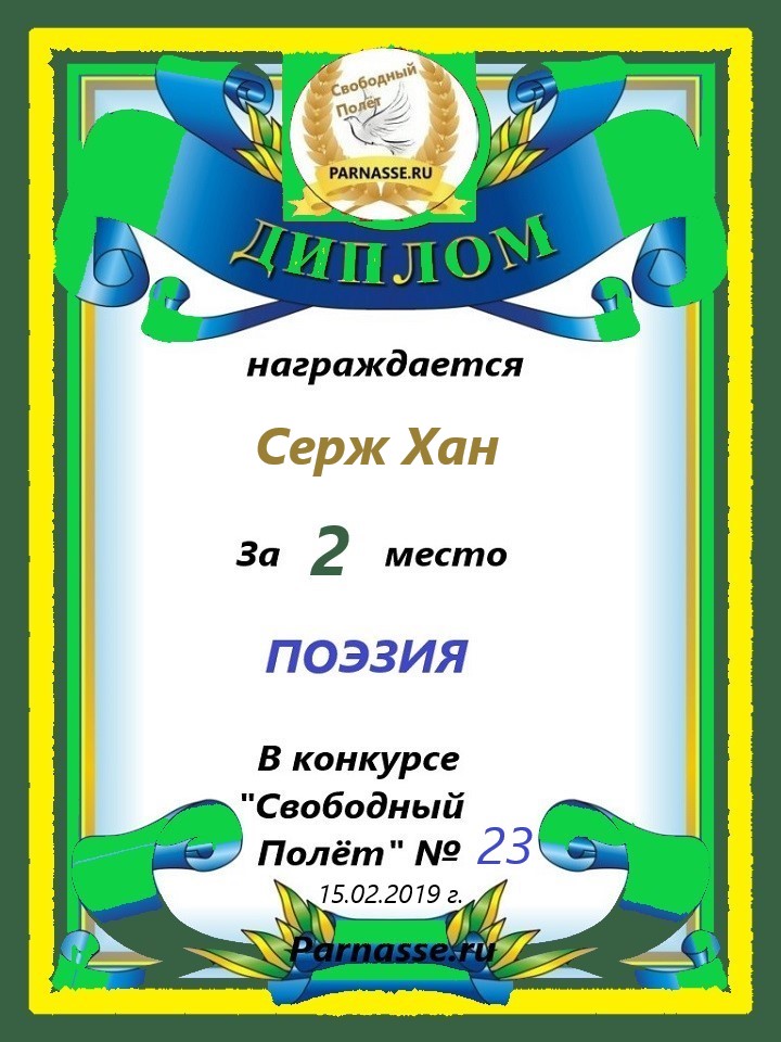 Диплом за 2-е место в номинации "ЛУЧШАЯ ДУЭЛЬ" по итогам судейского голосования в 13м конкурсе поэтических дуэлей (№ 9.1)