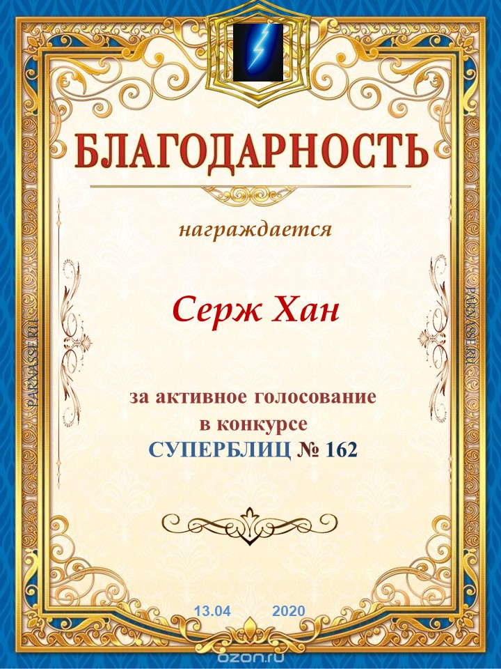Благодарность за активное голосование в 162 конкурсе СУПЕРБЛИЦА!СПАСИБО БОЛЬШОЕ!