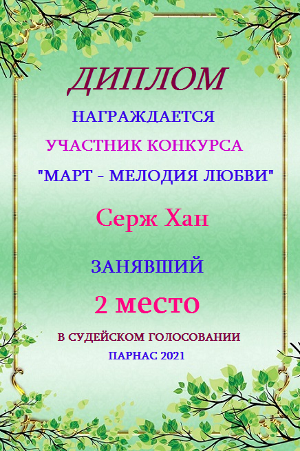 Второе место в судейском голосовании по итогам конкурса "Март - мелодия любви"