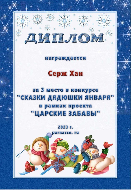 За 3 место в конкурсе "Сказки дядюшки Января". в рамках проекта "Царские Забавы". Поздравляем!