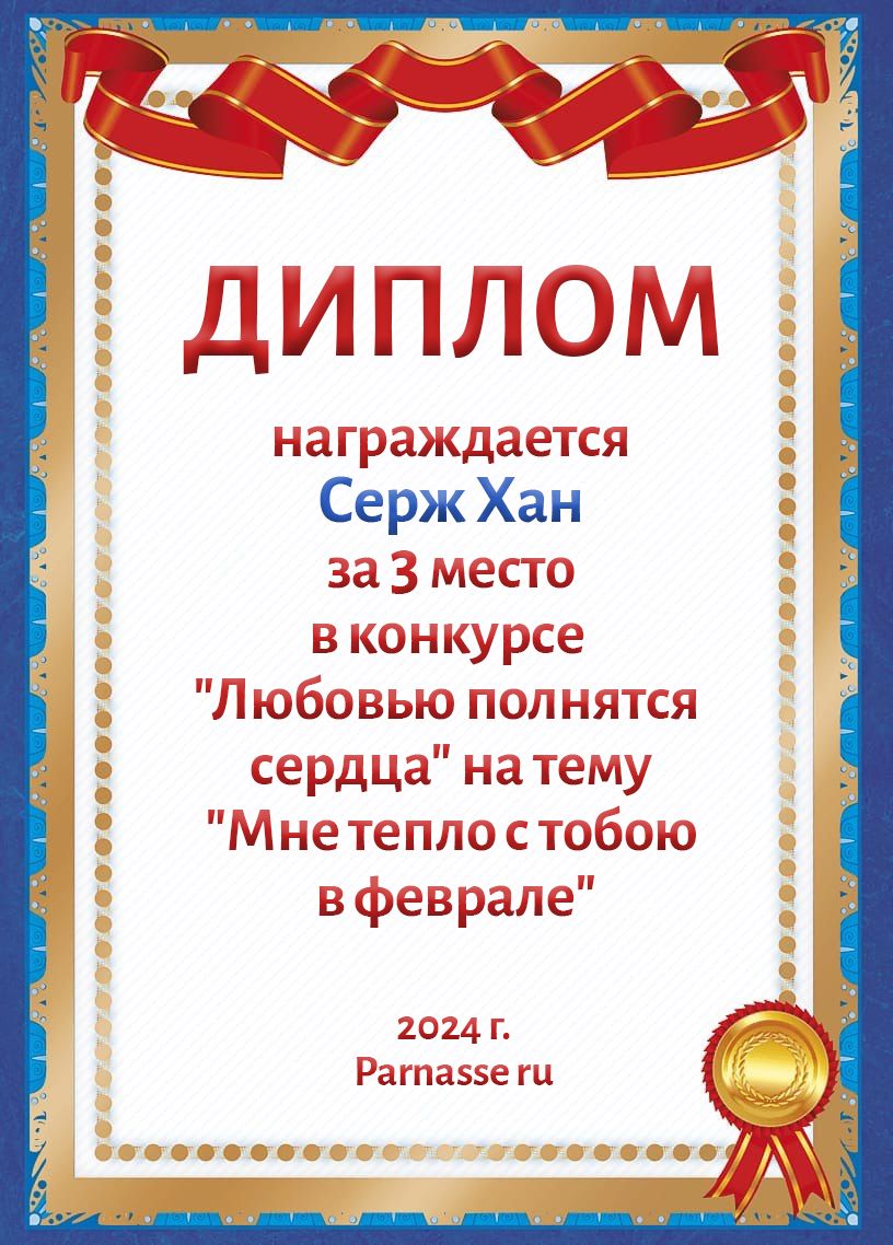 3 место в конкурсе "Мне тепло с тобою в феврале". Поздравляем!