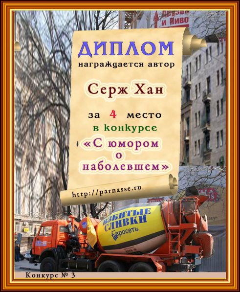 Диплом за 5 место в конкурсе " С юмором. о наболевшем"