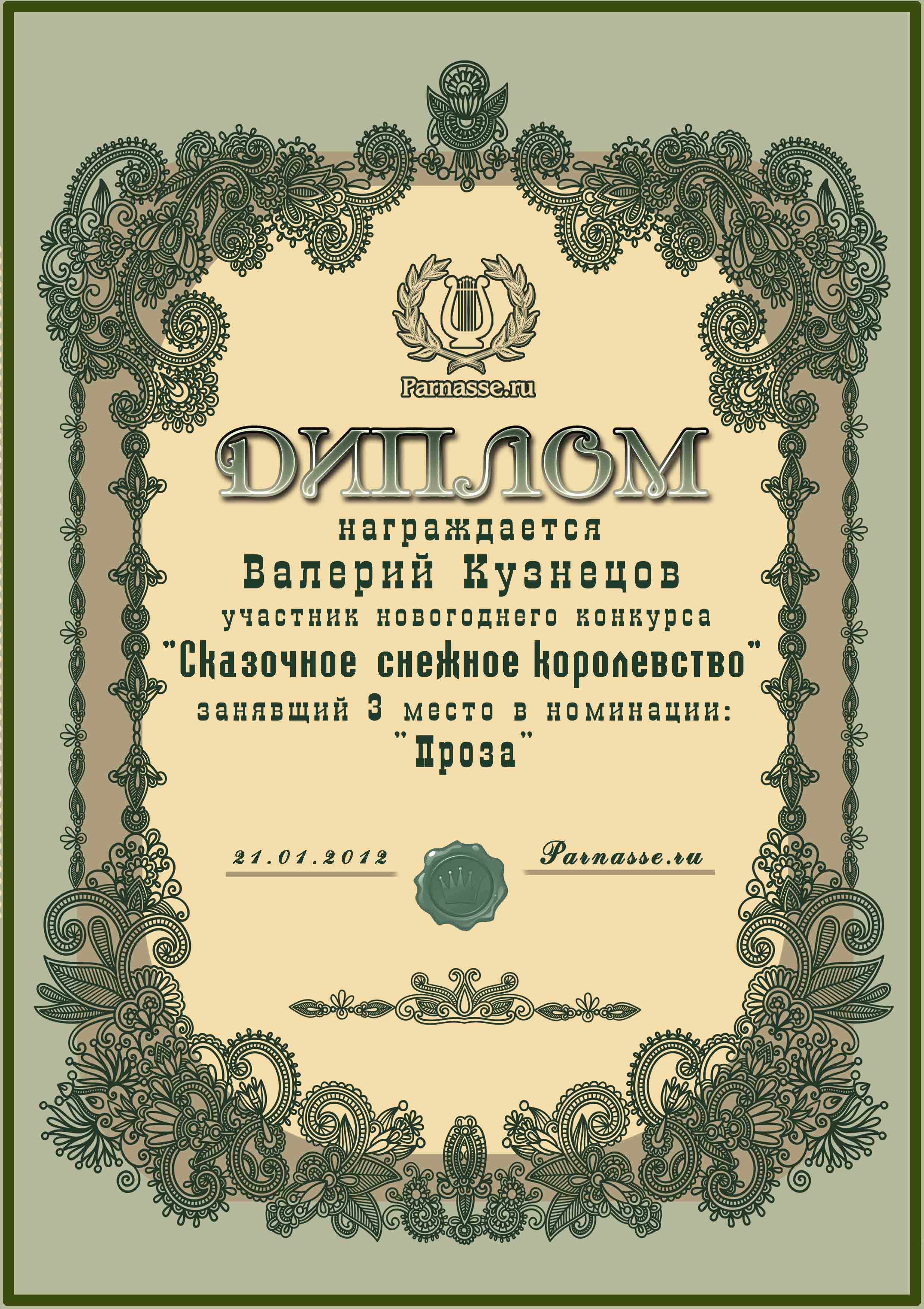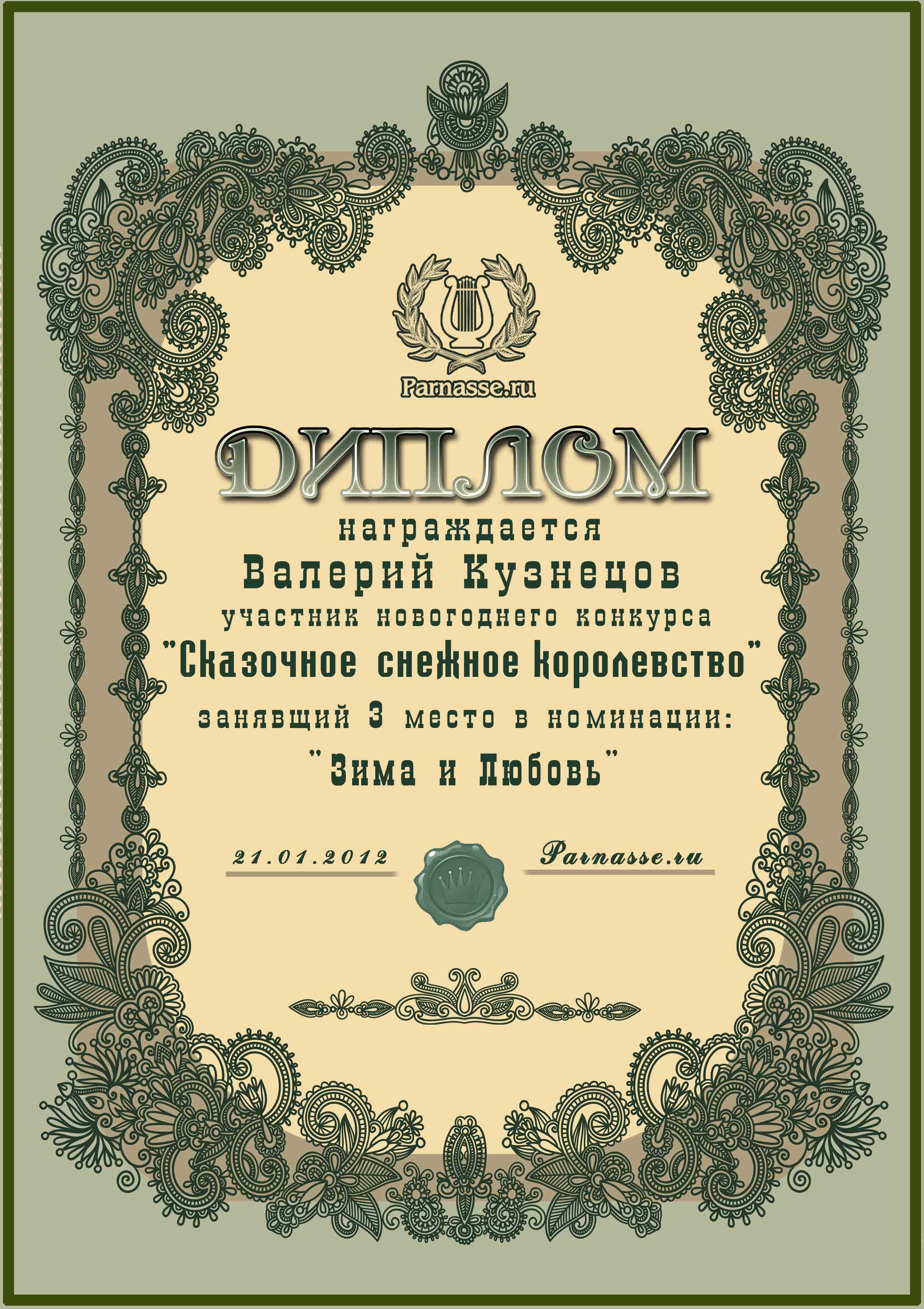 Диплом за 3 место в конкурсе "Сказочное снежное королевство!"