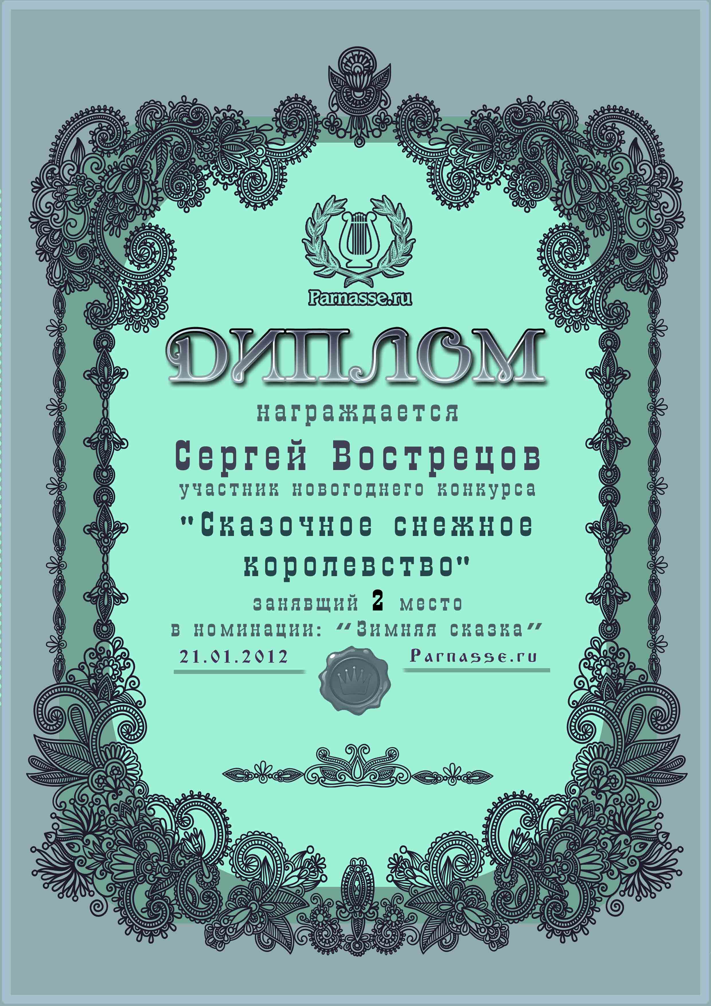 Диплом за 2 место в конкурсе "Сказочное снежное королевство!"